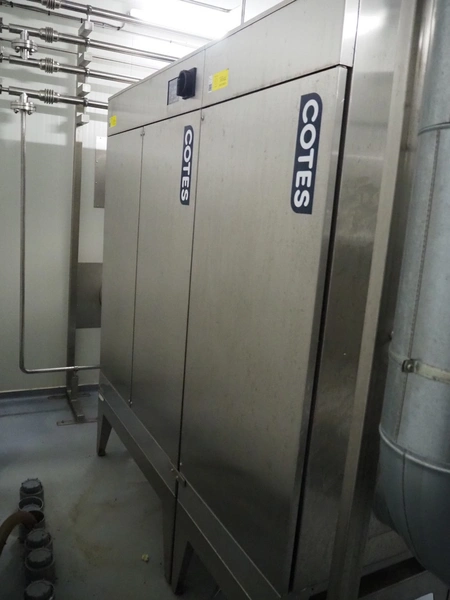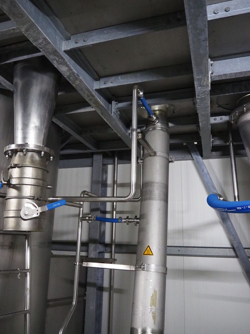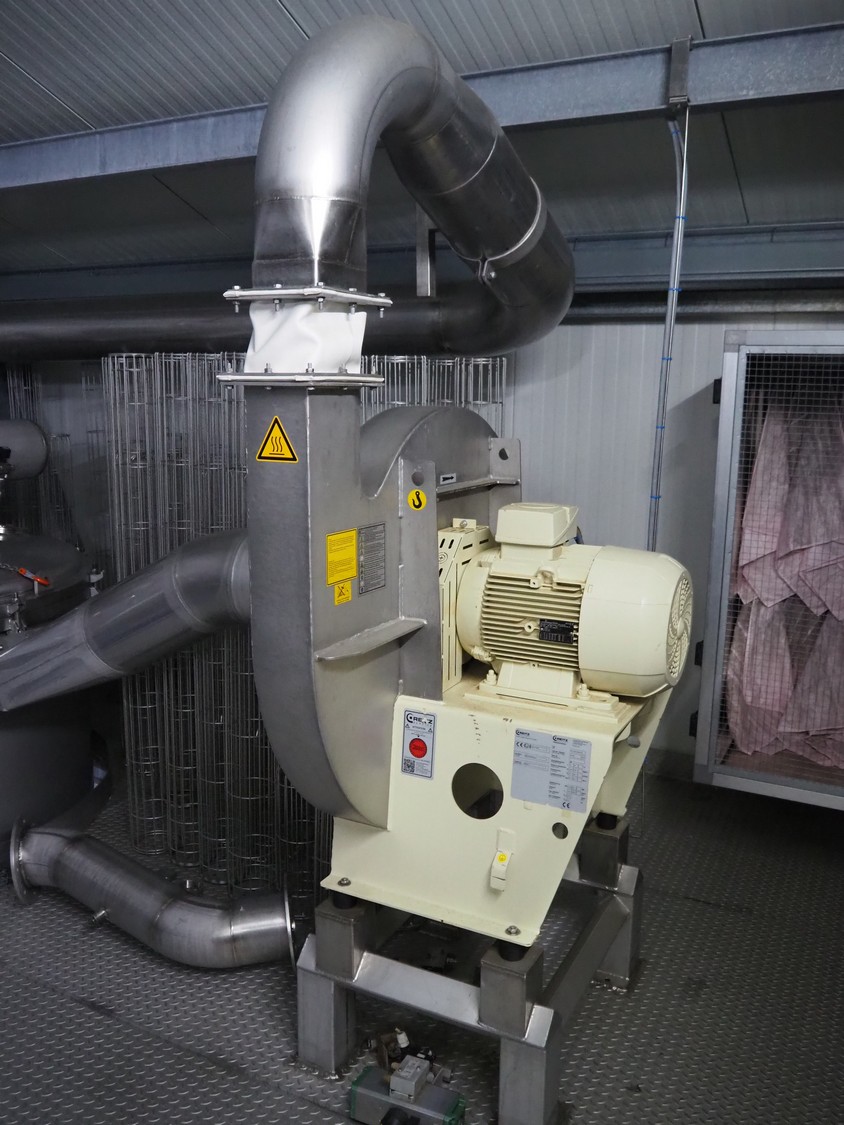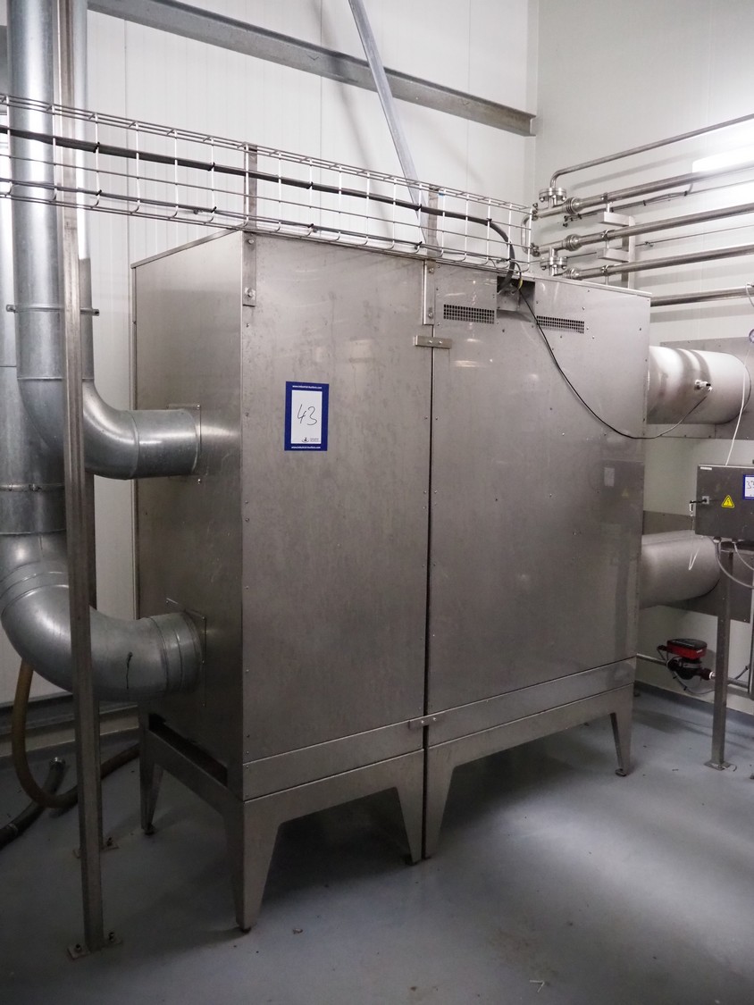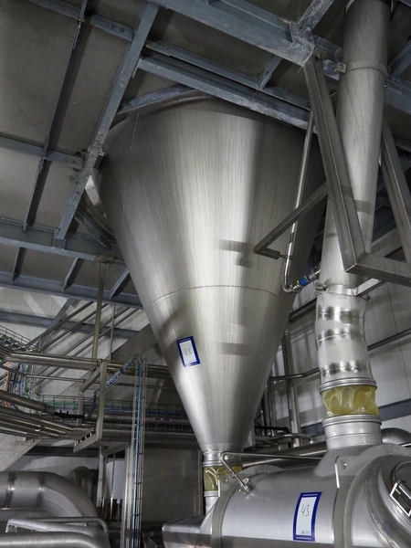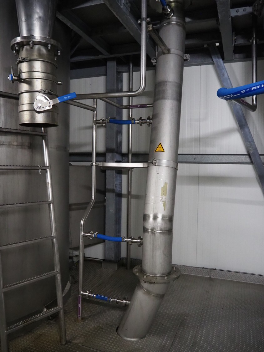 Dutch Process Technology spray drying installation, consisting of: spray dryer, bag filter, drying bed, Reitz blowers, Cotes dehumidifier, model: C65, serial number: 19.14655, Pomac centrifugal pump, DTP switch cabinet, s/s platforms and steel construction, total dimensions: 9600 mm x 5000 mm x 11500 mm.