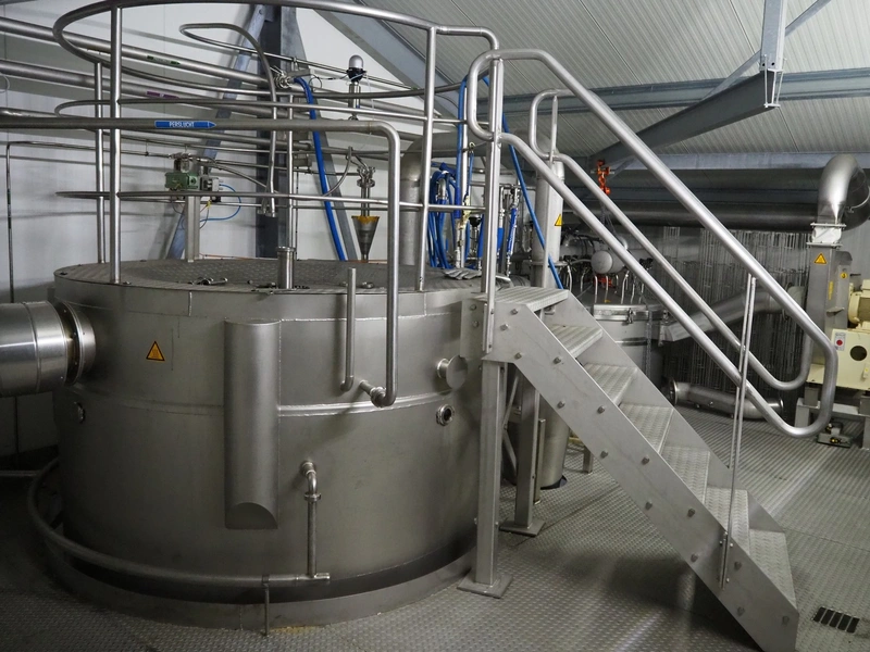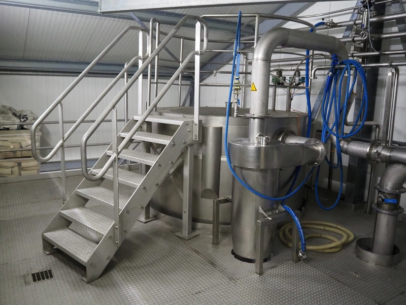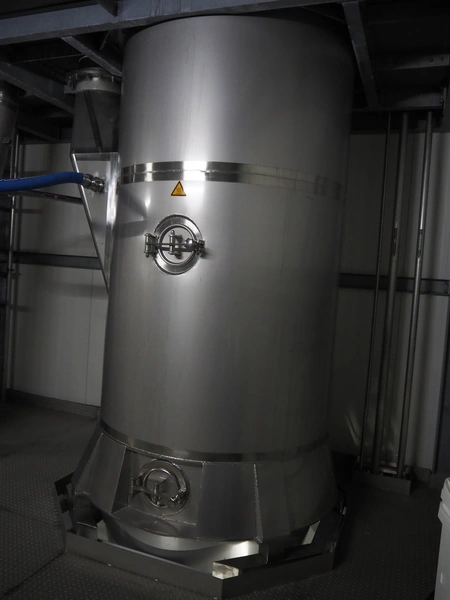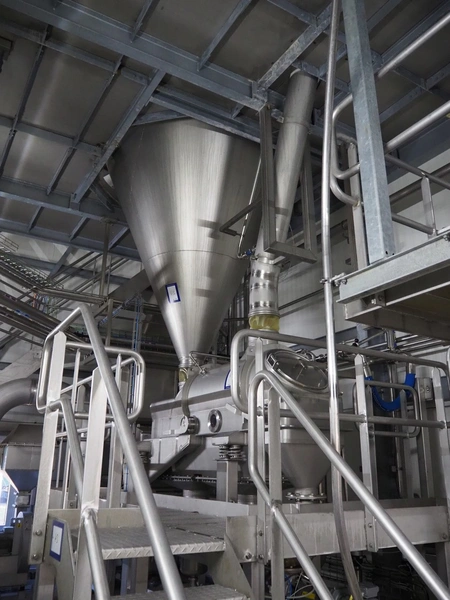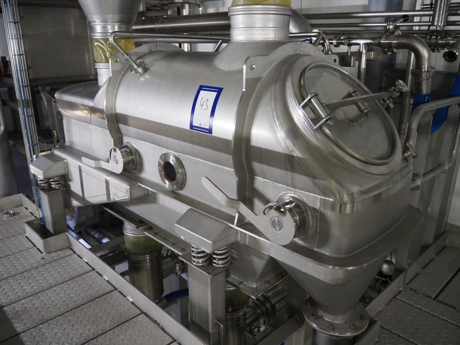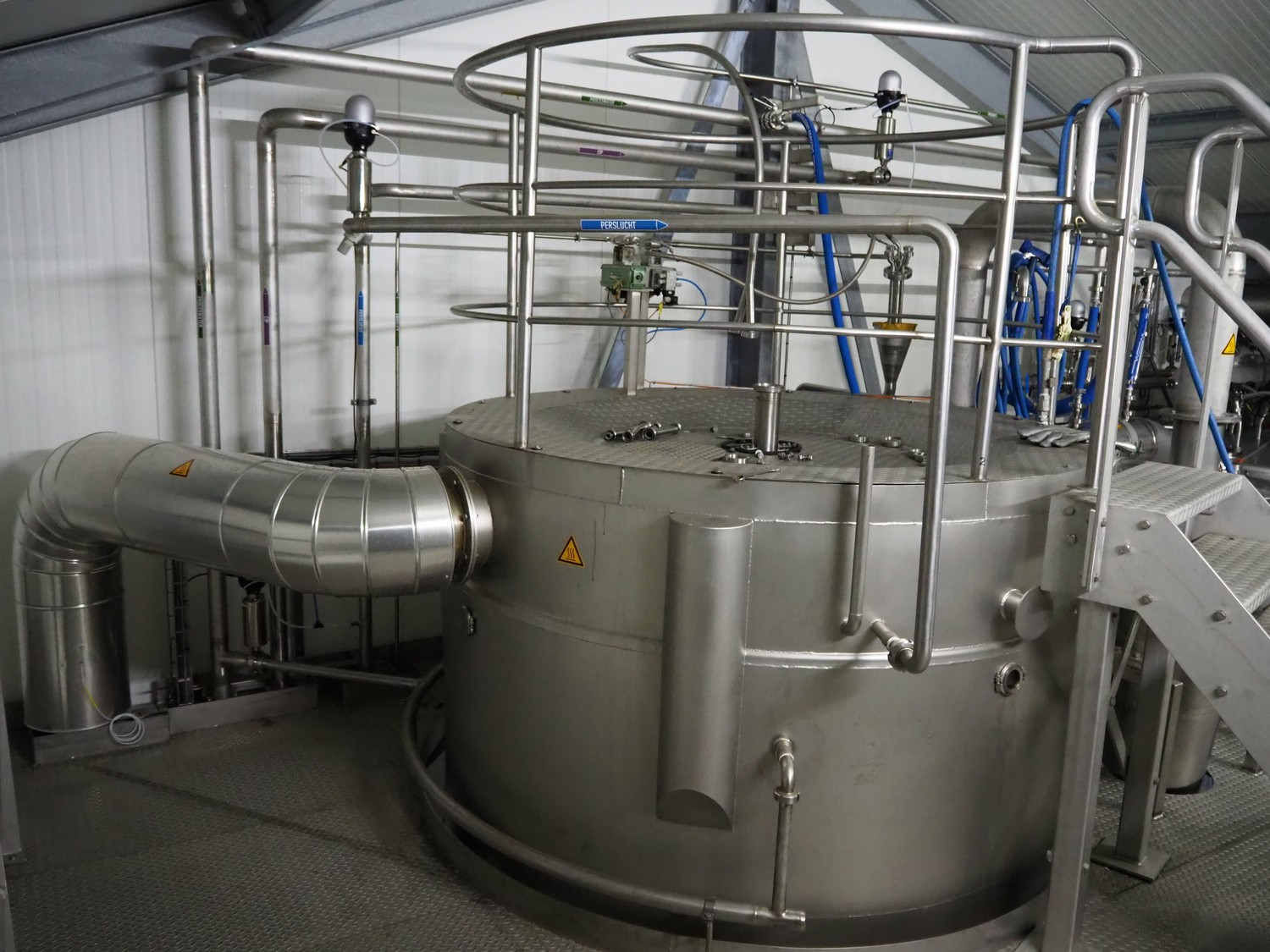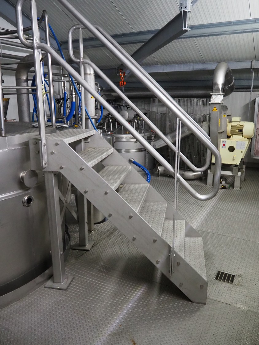Dutch Process Technology spray drying installation, consisting of: spray dryer, bag filter, drying bed, Reitz blowers, Cotes dehumidifier, model: C65, serial number: 19.14655, Pomac centrifugal pump, DTP switch cabinet, s/s platforms and steel construction, total dimensions: 9600 mm x 5000 mm x 11500 mm.