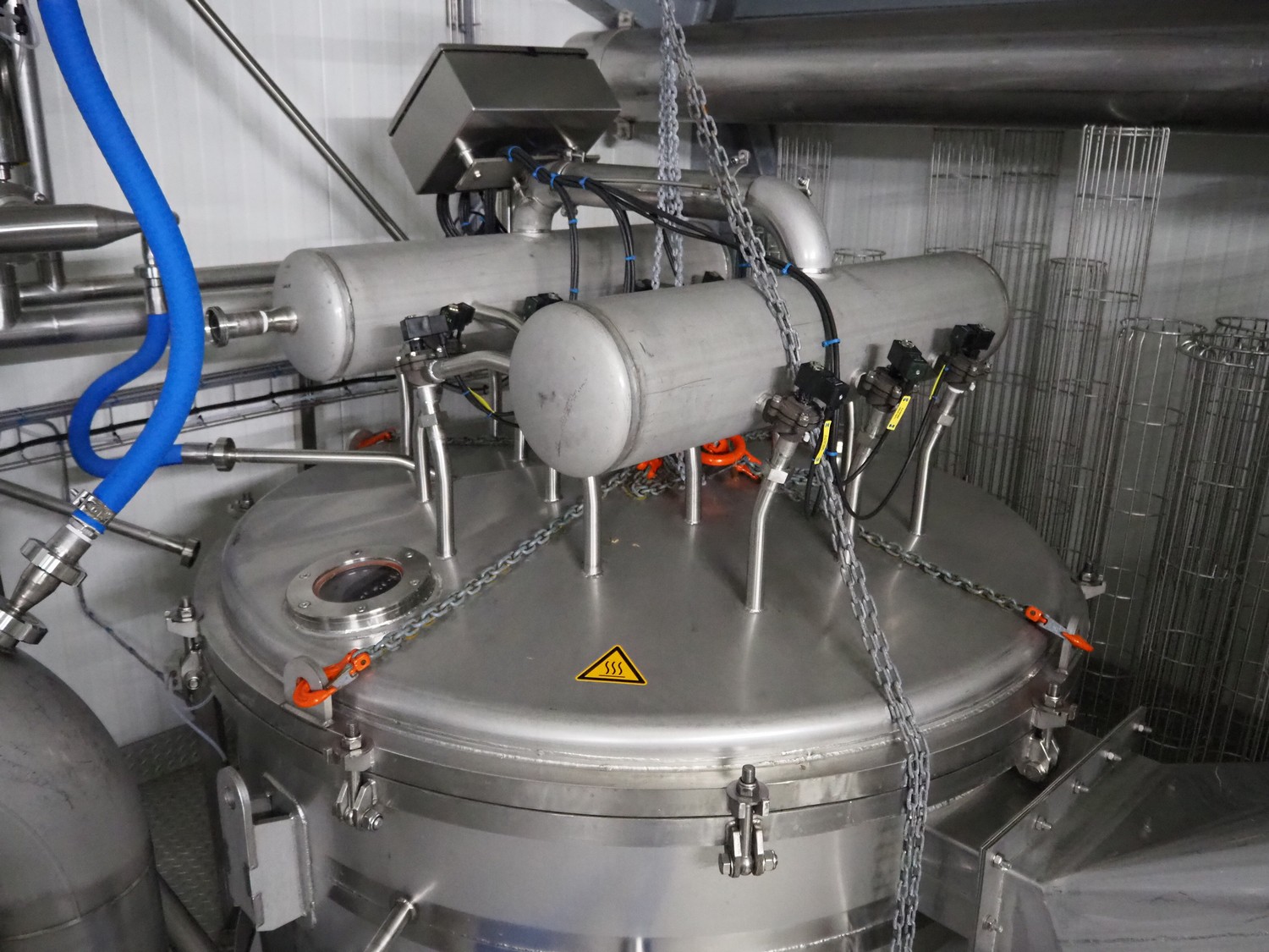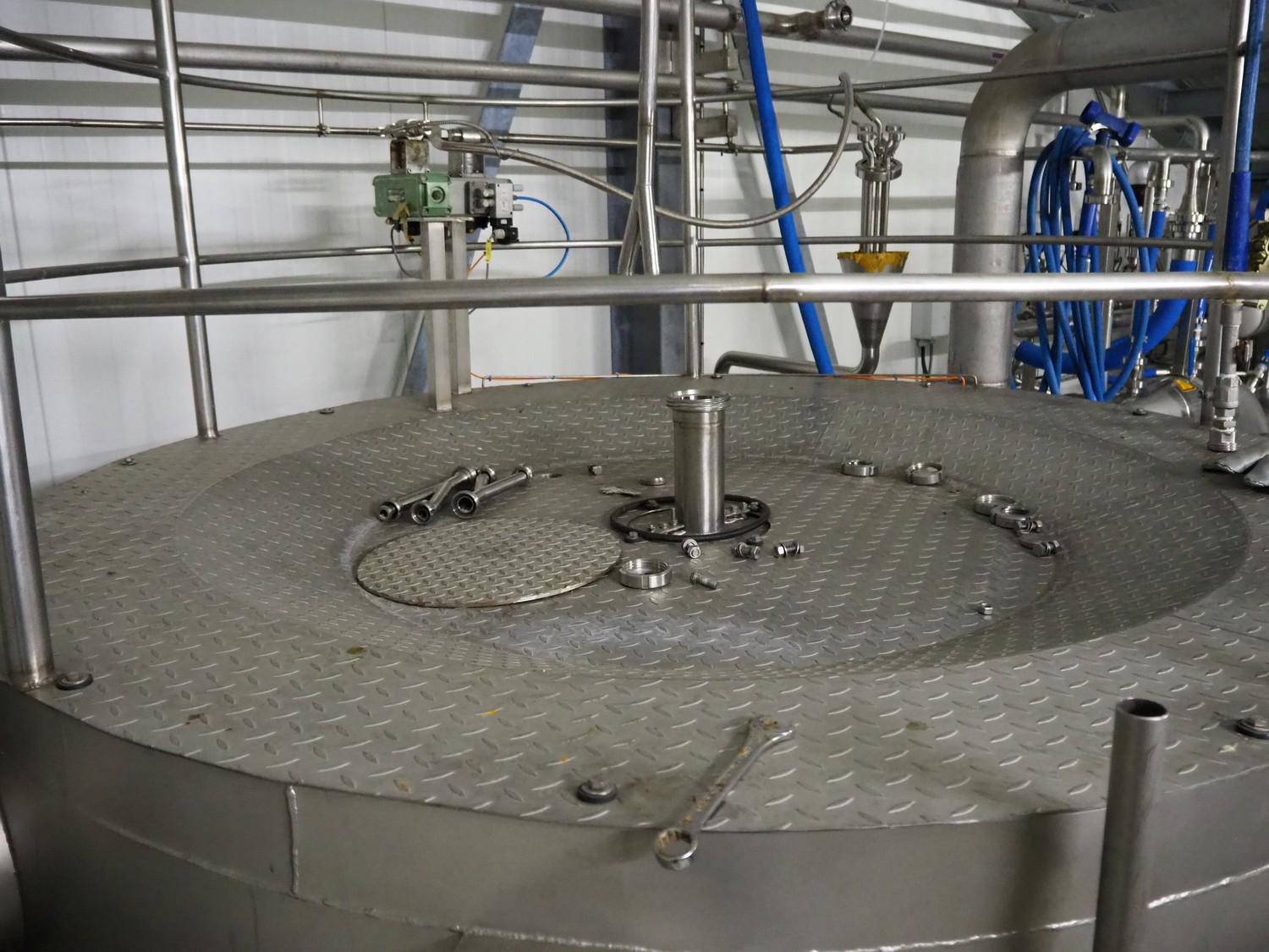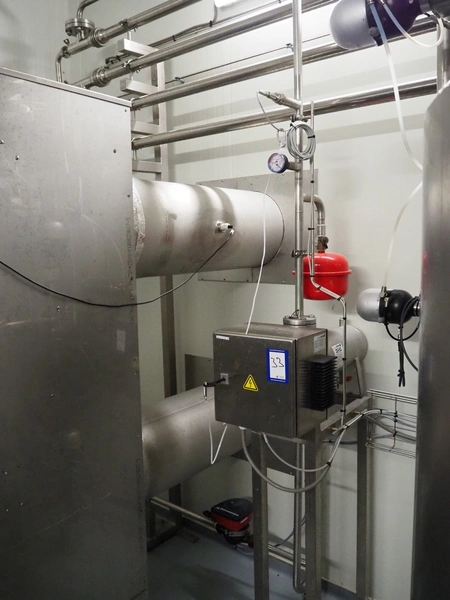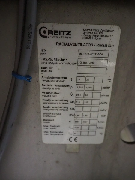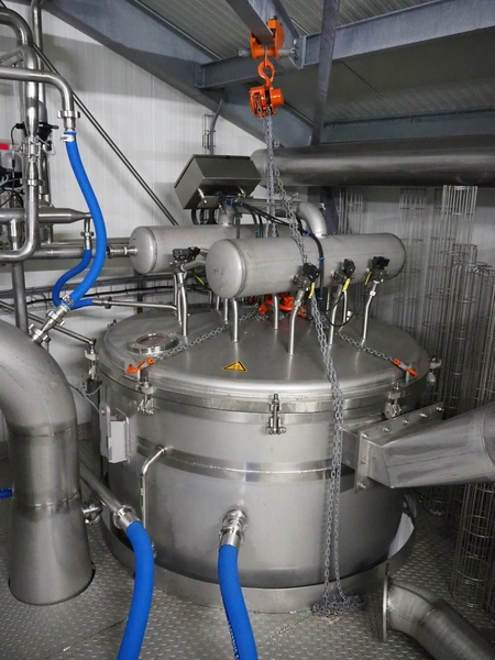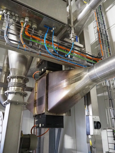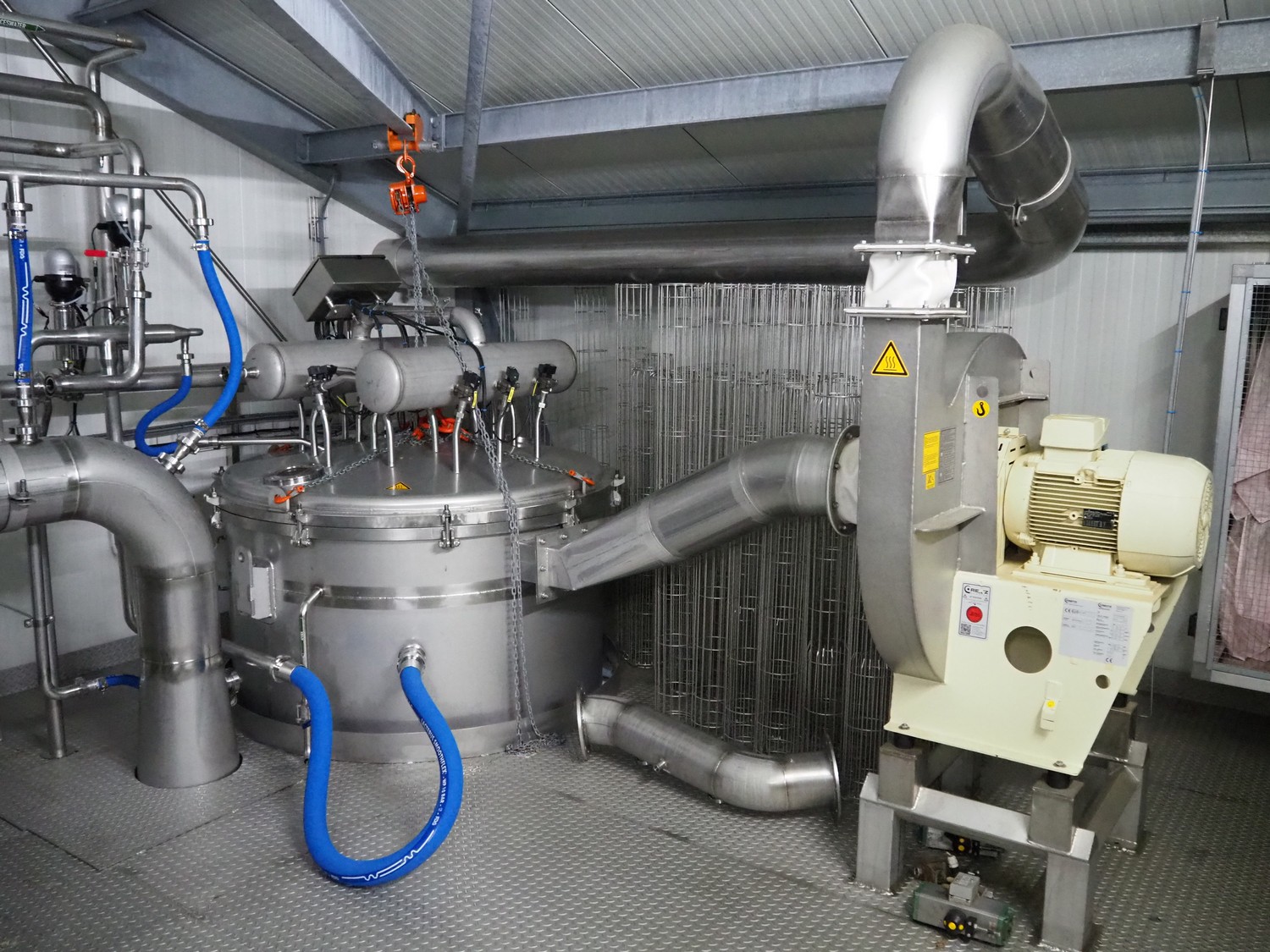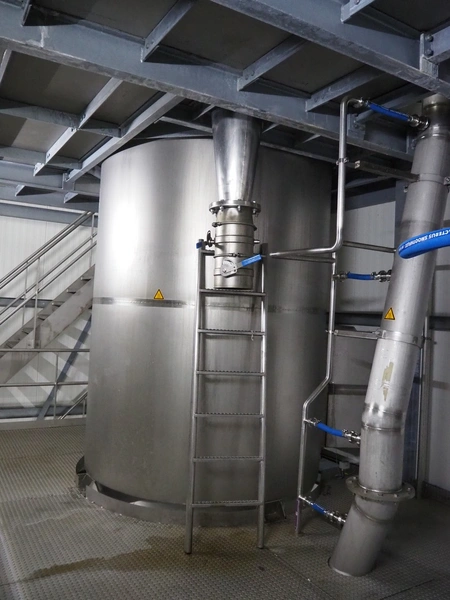 Dutch Process Technology spray drying installation, consisting of: spray dryer, bag filter, drying bed, Reitz blowers, Cotes dehumidifier, model: C65, serial number: 19.14655, Pomac centrifugal pump, DTP switch cabinet, s/s platforms and steel construction, total dimensions: 9600 mm x 5000 mm x 11500 mm.