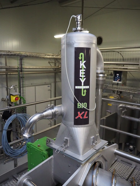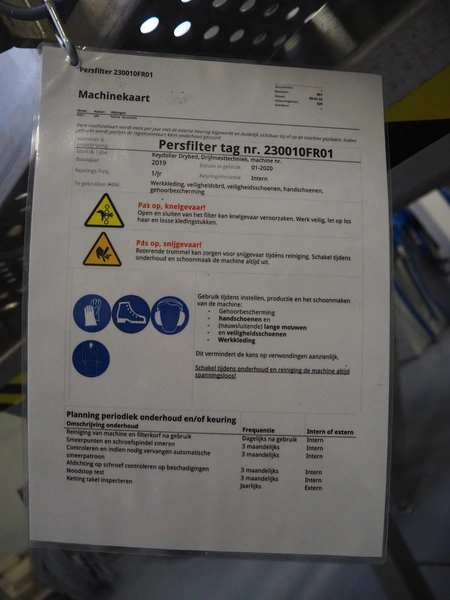 Keydollar BV pressure filter, type: Bio XL, serial number: 34-2019-101, year of construction: 2019, weight: 1376 kg, worm diameter: 300 mm, tier: 125 mm, total dimensions: 4200 mm x 1350 mm x 2000 mm. Including 2 filters, inside dimensions: Ø 300 mm x 520 mm, total dimensions: Ø 530 mm x 520 mm.