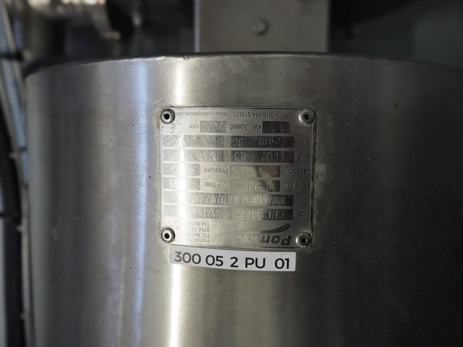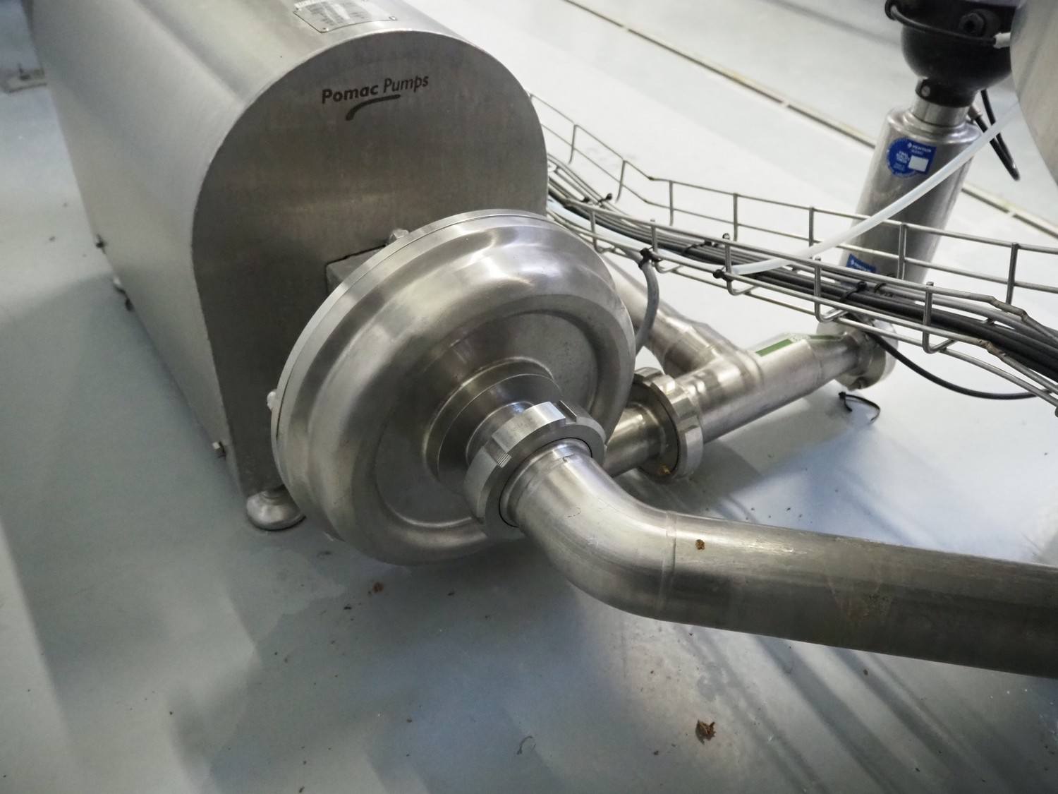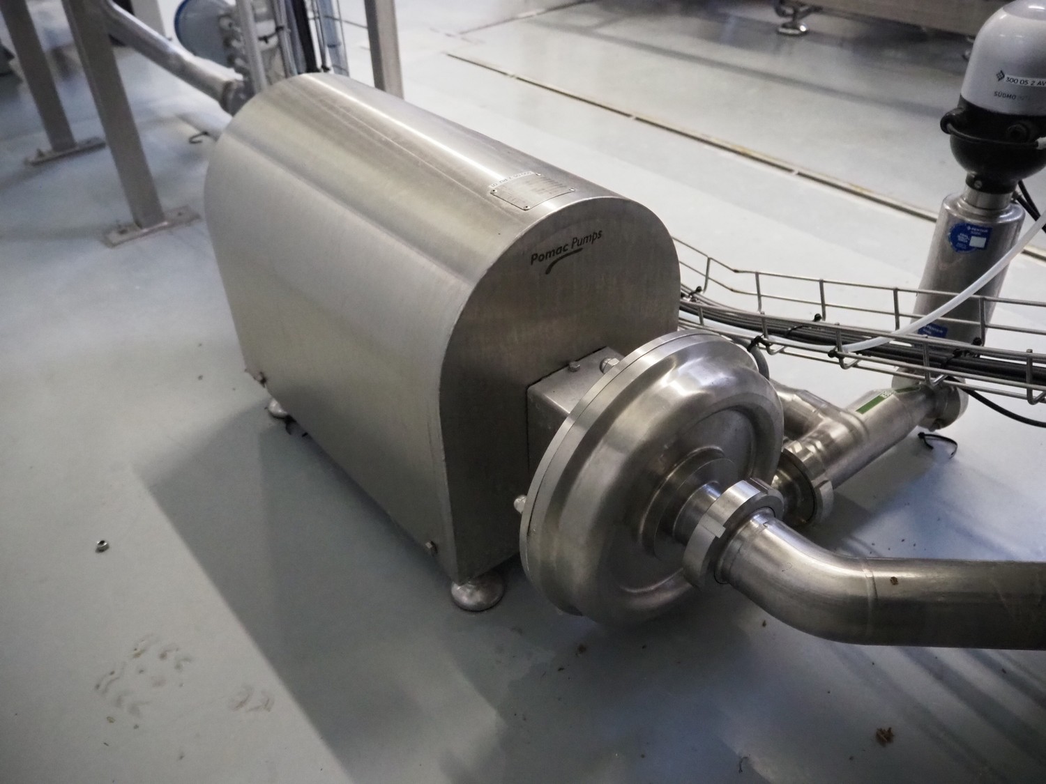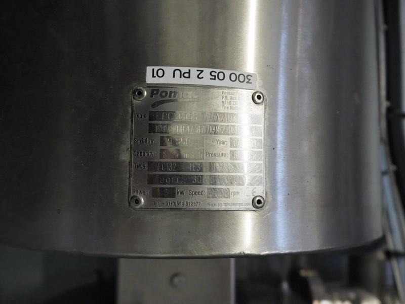 Pomac centrifugal pump, type: CPC26055 / 0210X14, serial number: 29.850, year of construction: 07/2019, 7.5 kW, 3000 rpm, capacity: 8/24 m³ per hour, dimensions: 770 mm x 310 mm x 440 mm.