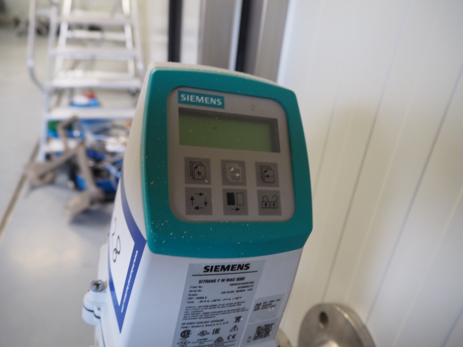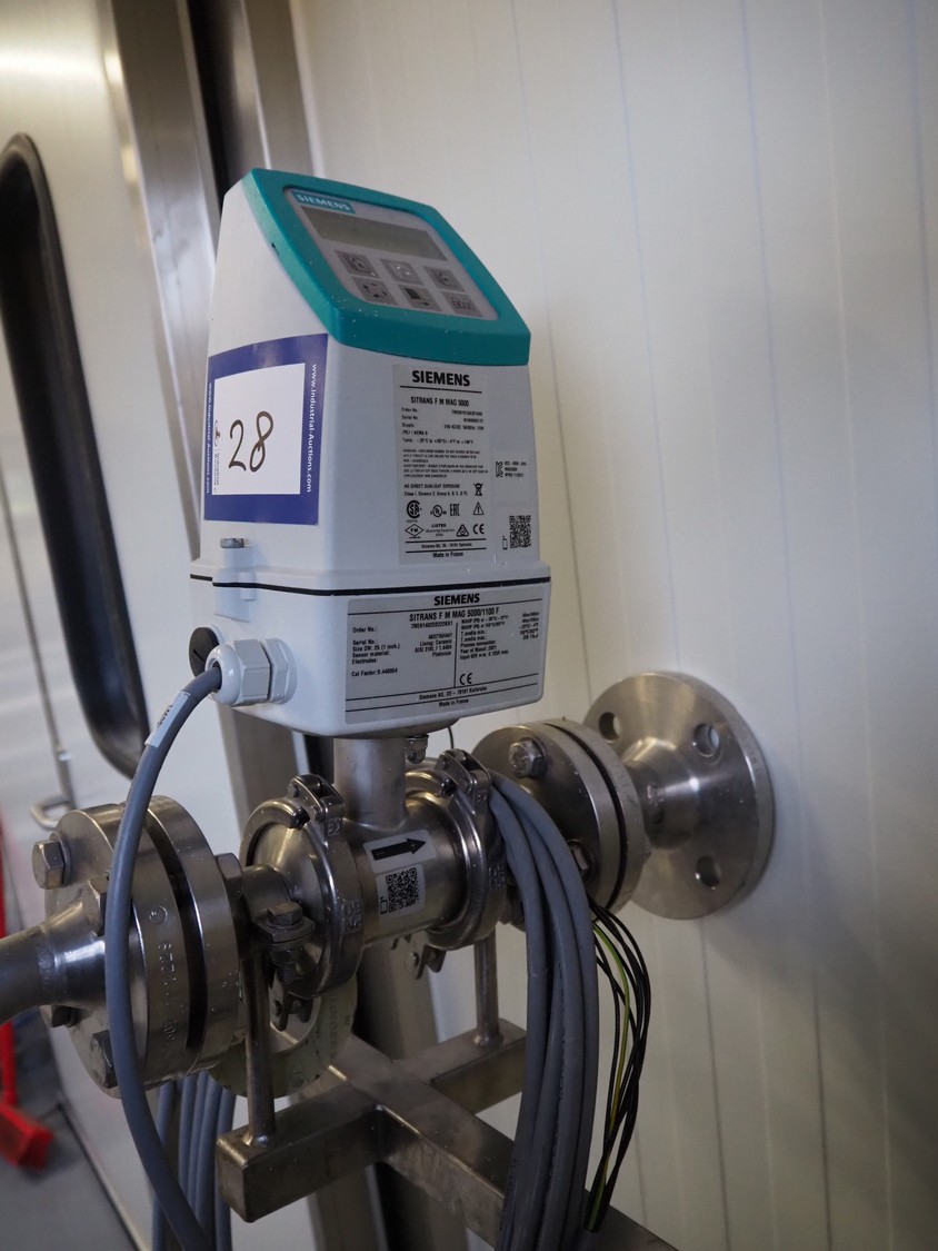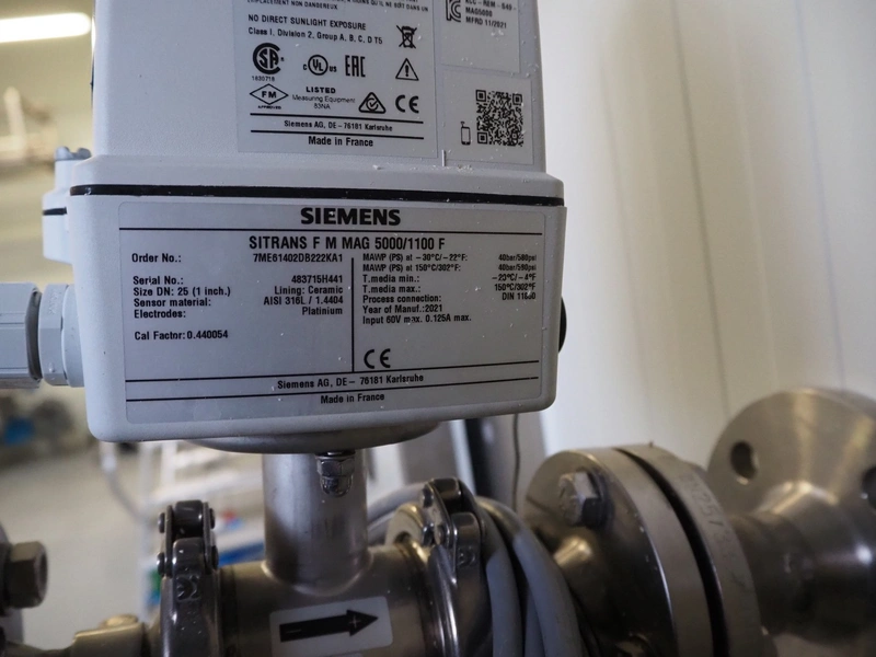 Siemens flowmeter on s/s frame, model: SITRANS F M MAG 5000/1100 F, year of construction: 2021, dimensions: 500 mm x 600 mm x 1700 mm.