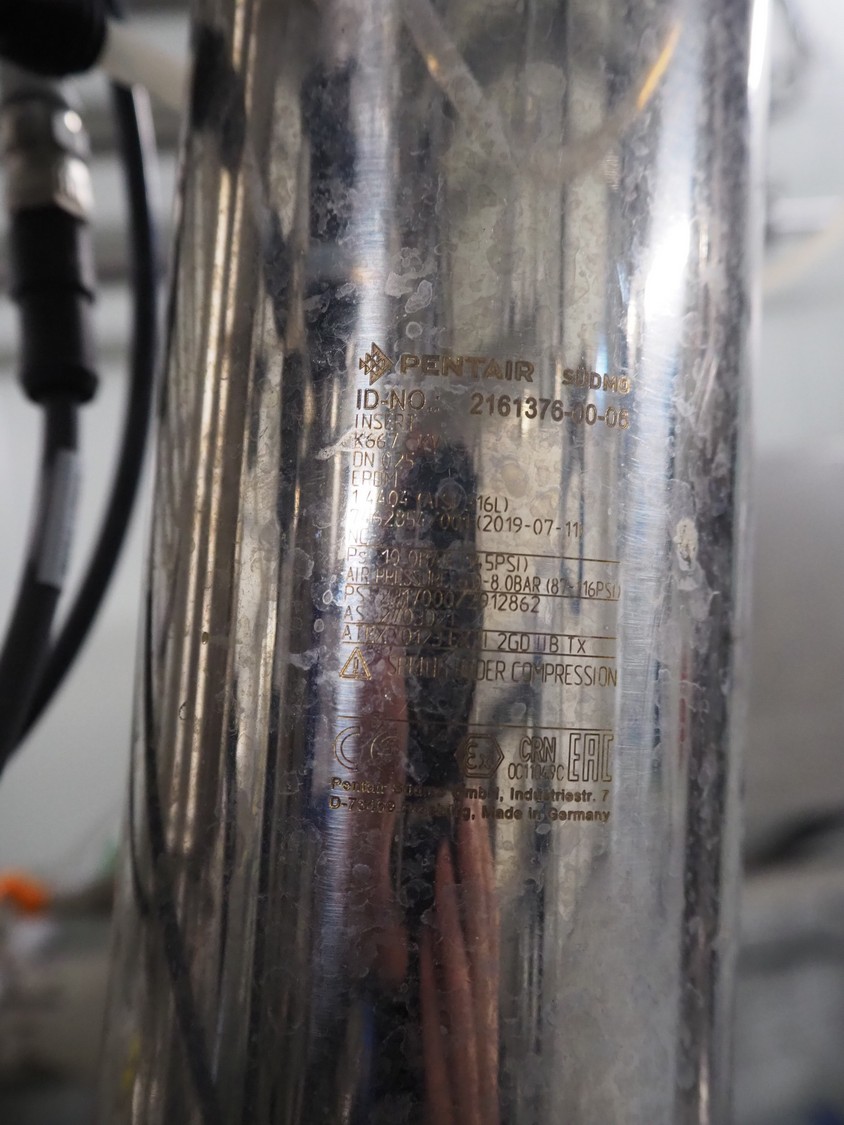 6 Pentair valves, dimensions: (6x) 160 mm x 160 mm x 500 mm.