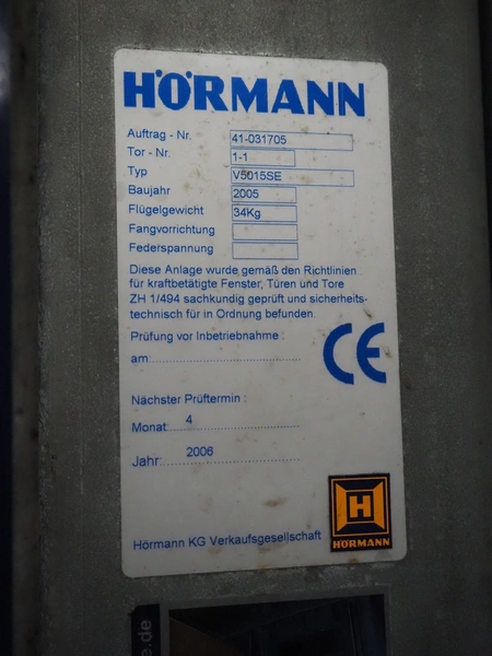 • 2 pcs. Hӧrmann electric shutter doors, type: V5015SE, year of construction: 2005, dimensions: (2x) 3000 mm x 3000 mm,