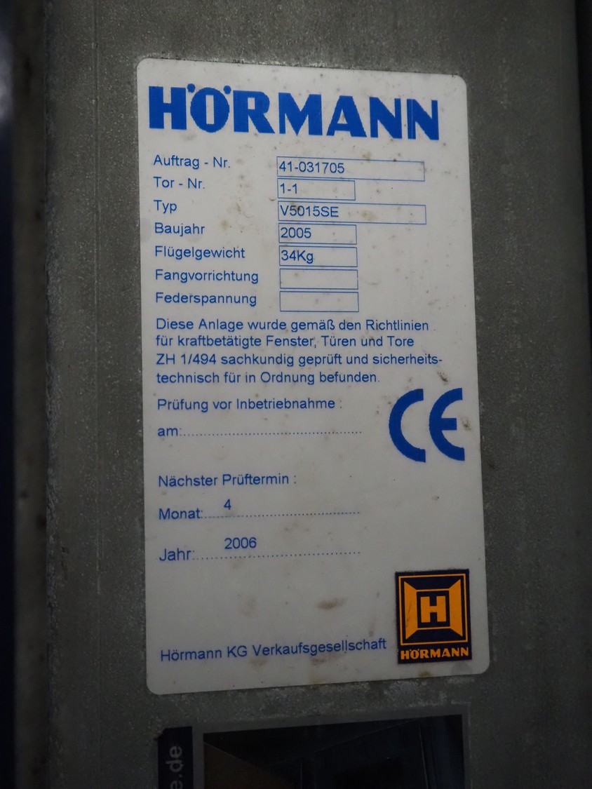 - 2 pcs. Hӧrmann electric shutter doors, type: V5015SE, year of construction: 2005, dimensions: (2x) 3000 mm x 3000 mm,