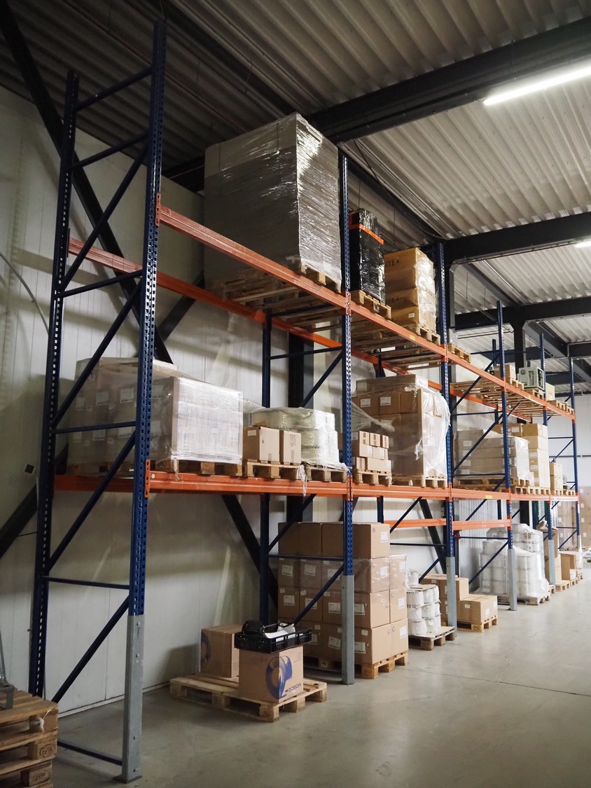 Pallet rack consisting of 6 uprights, dimensions: (6x) 1100 mm x 5500 mm and 22 beams, length: (22x) 2780 mm, total dimensions pallet rack: 14000 mm x 1100 mm x 5500 mm. Including 2 additional uprights. Without content.