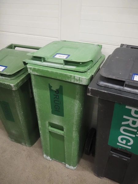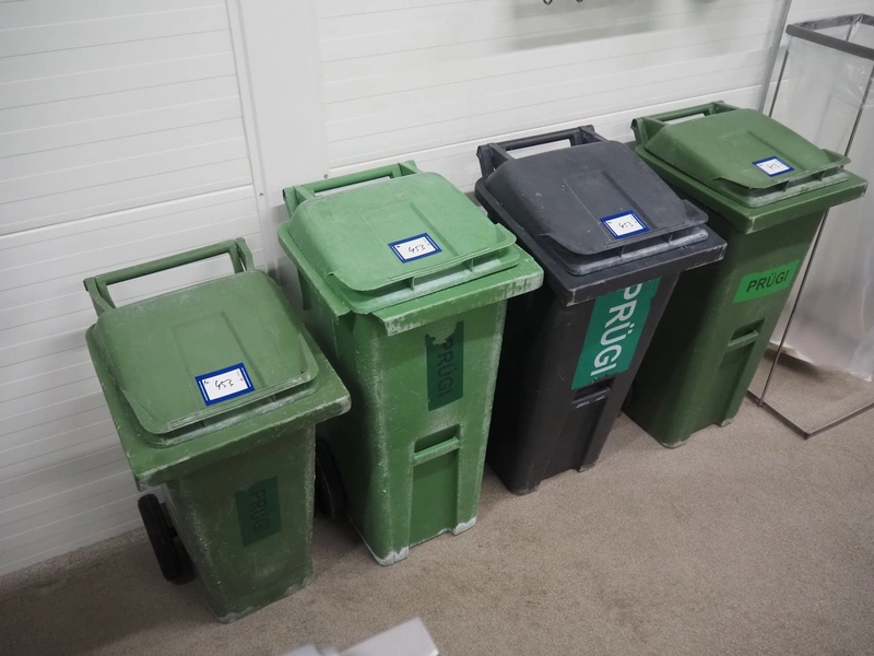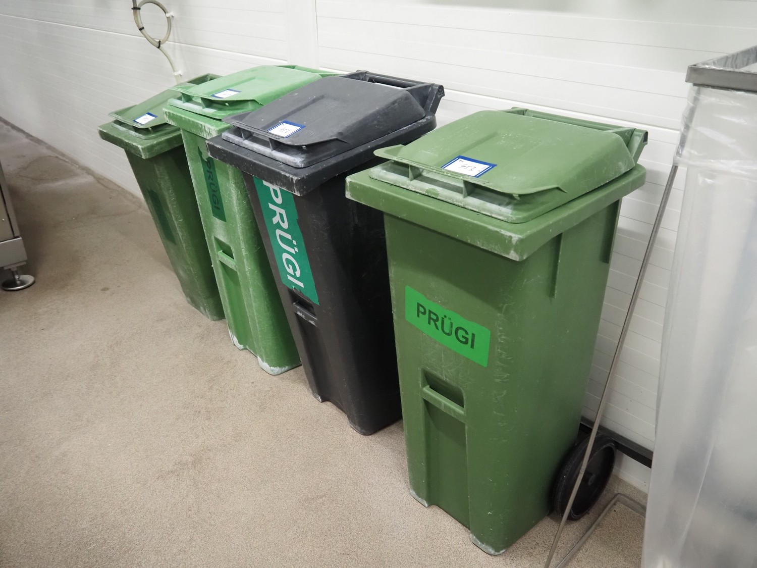4 plastic waste containers, dimensions: 520 mm x 480 mm x 1080 mm.