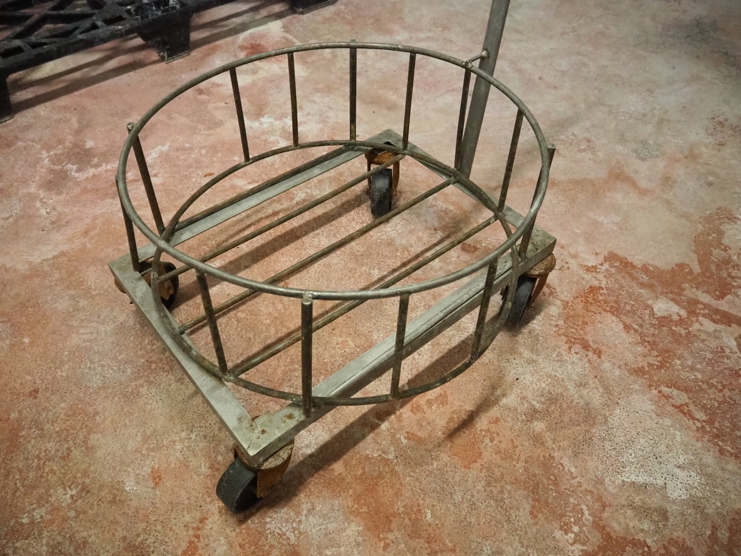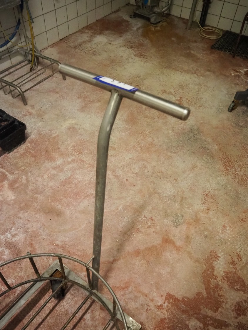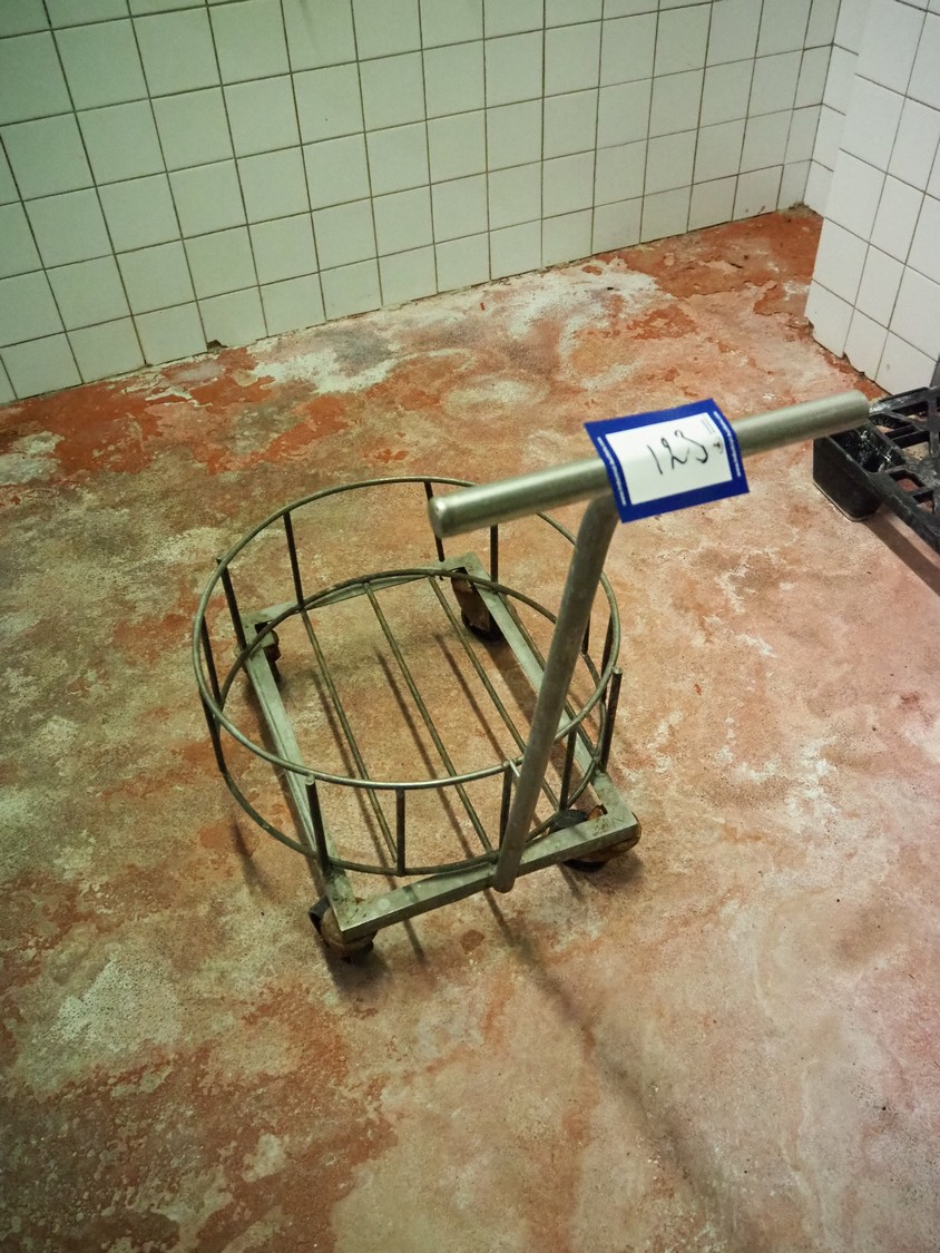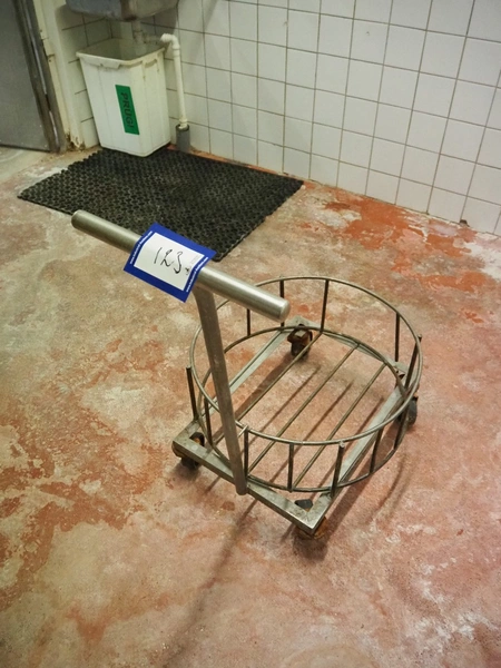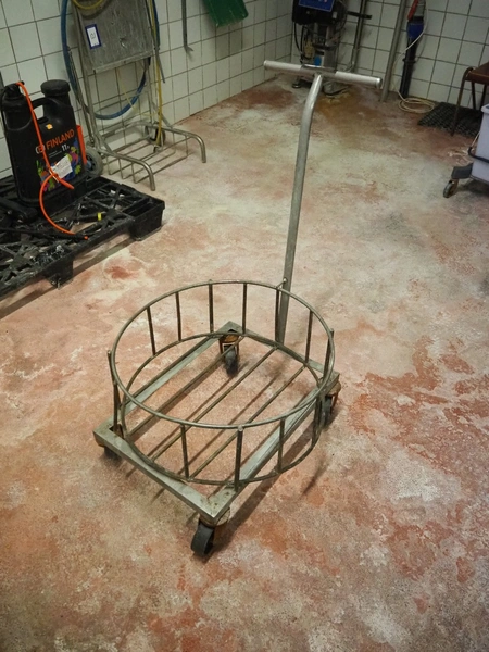 S/s trolley for buckets, dimensions: 800 mm x 560 mm x 930 mm.