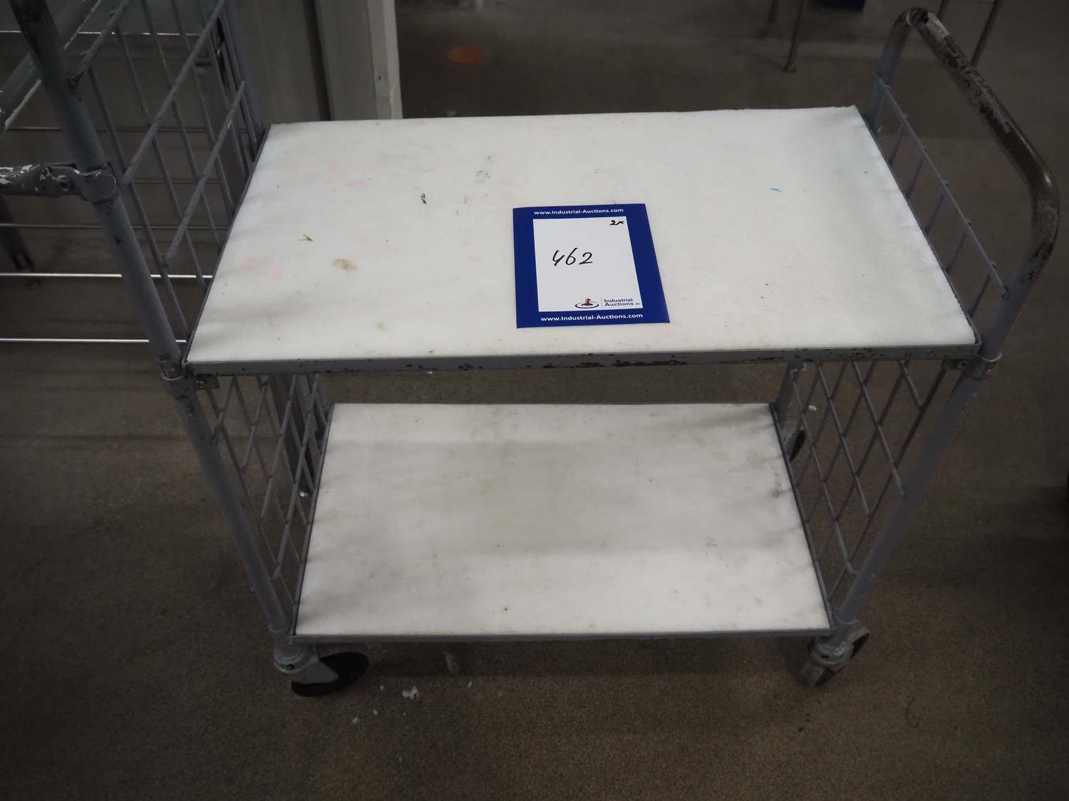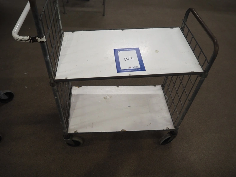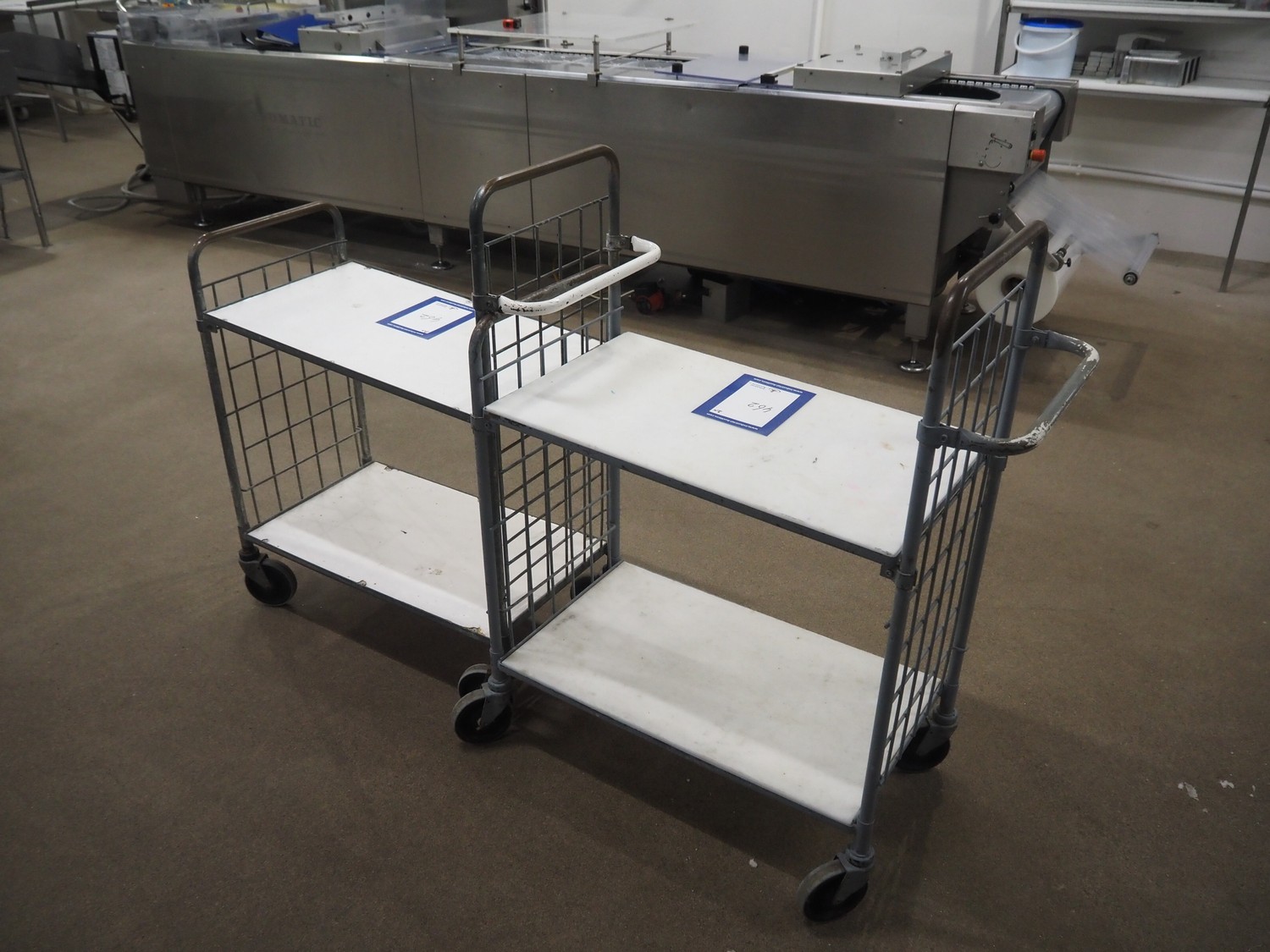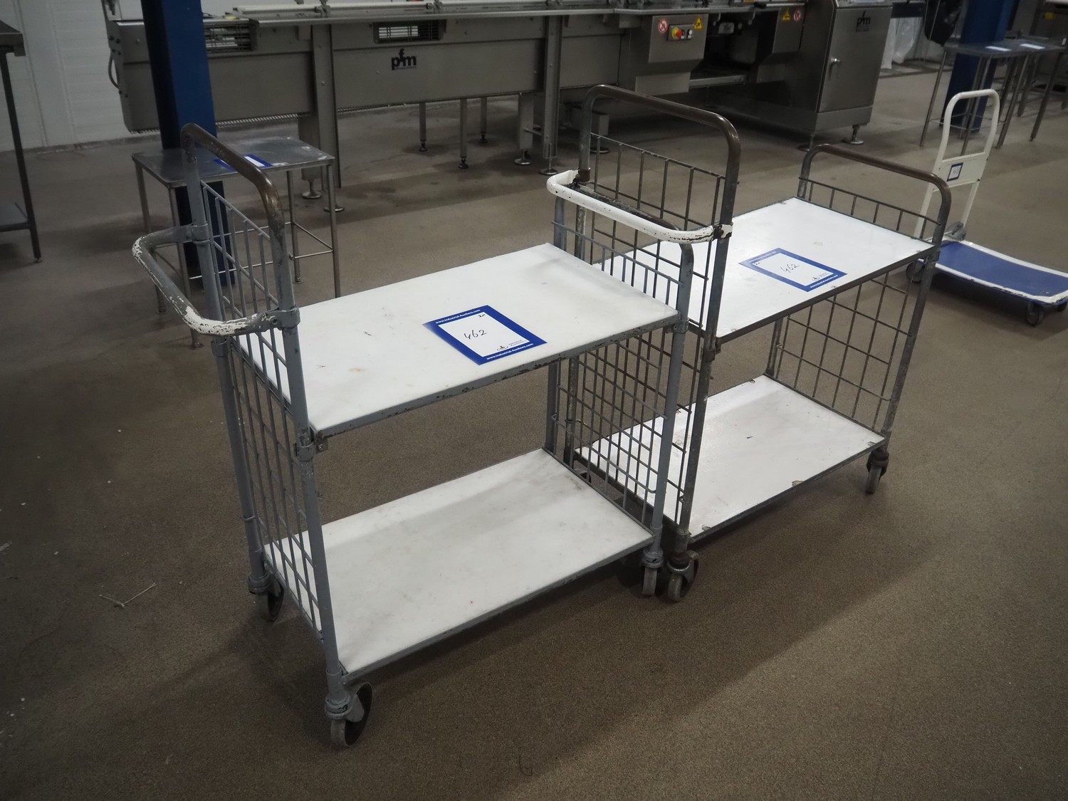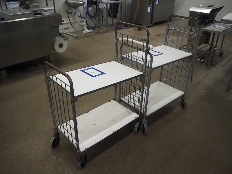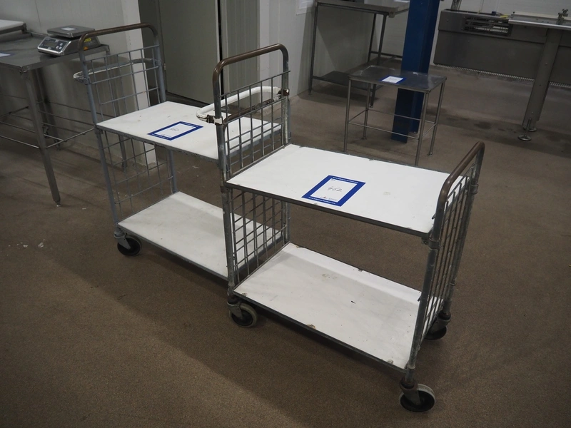 2 steel trolleys, 2 floors, dimensions: (2x) 900 mm x 430 mm x 1110 mm.
