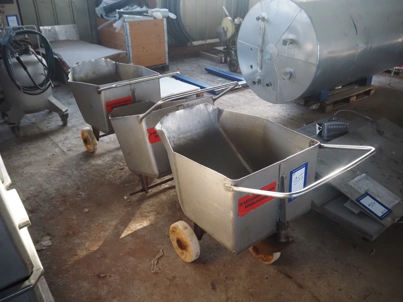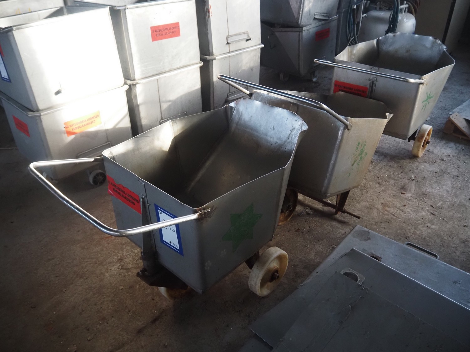 3 s/s wheel barrows, dimensions: (3x) 1100 mm x 800 mm x 730 mm.