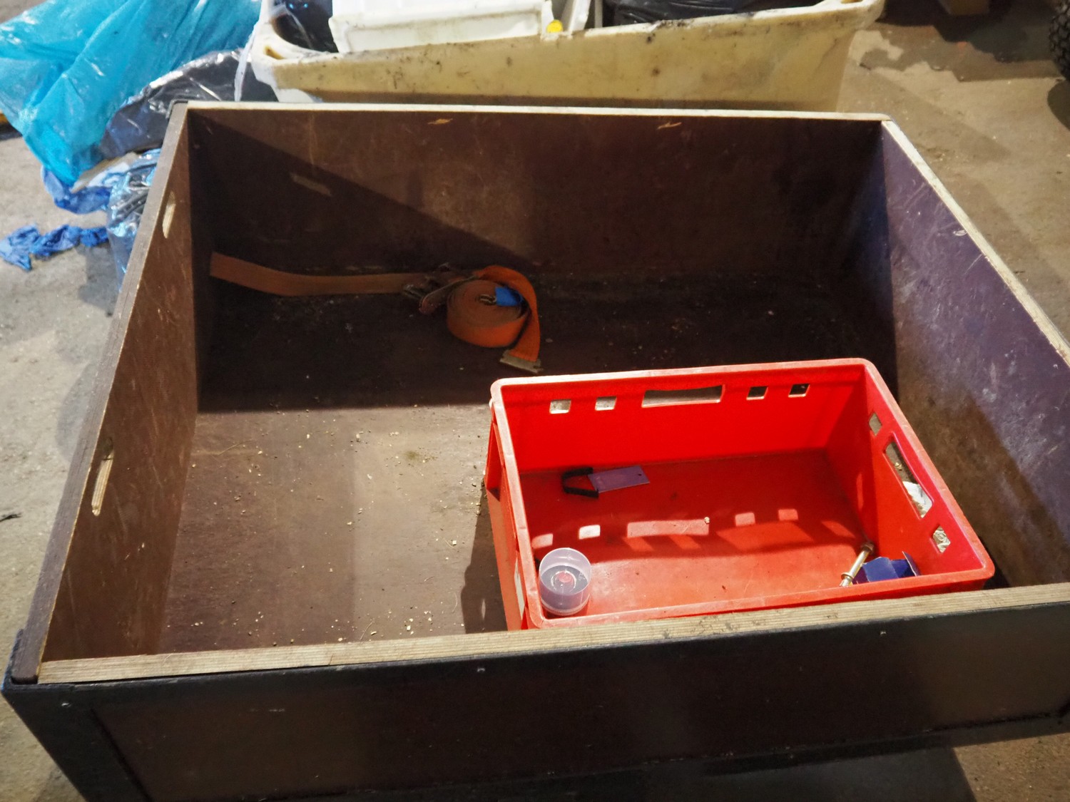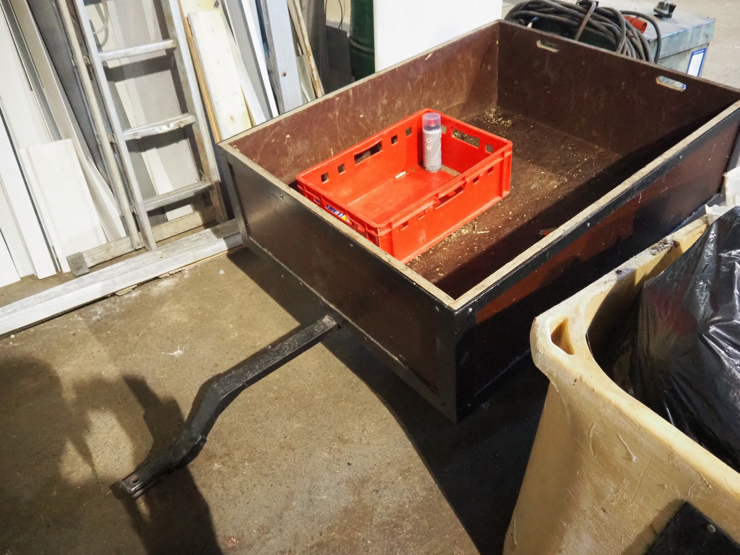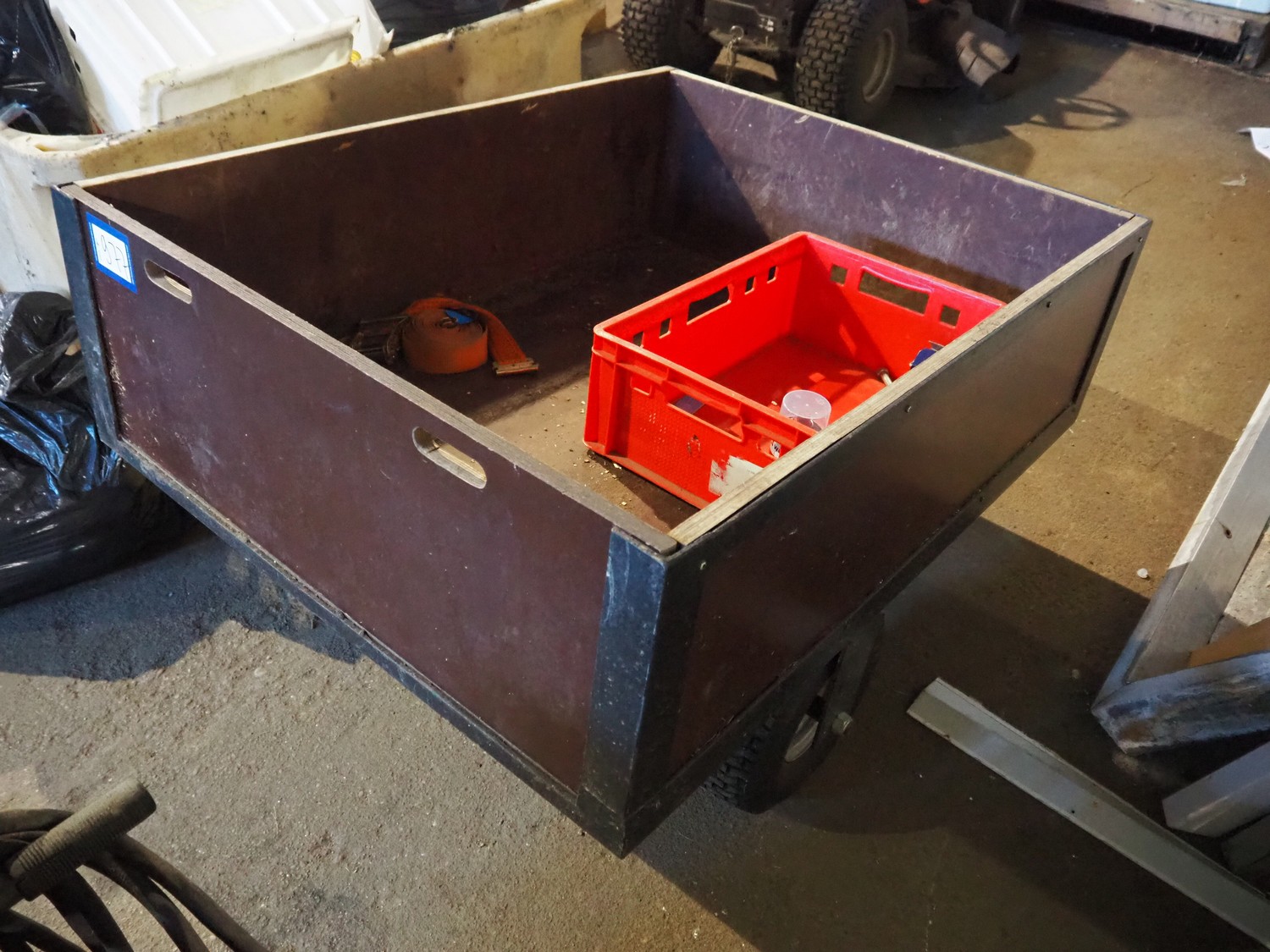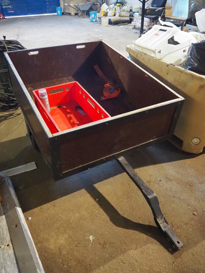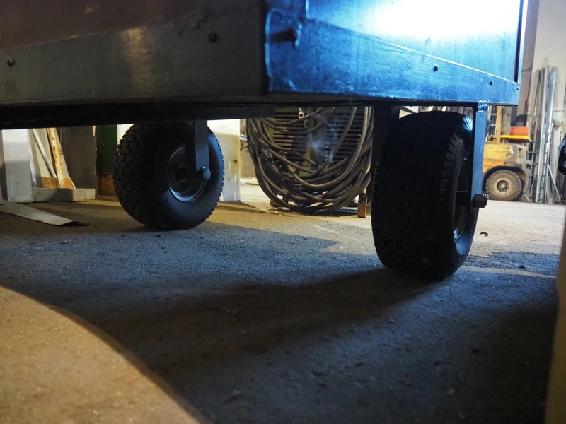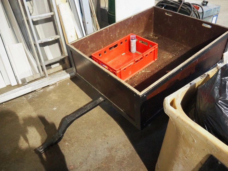 Wooden trolley, dimensions: 1250 mm x 1000 mm x 850 mm.