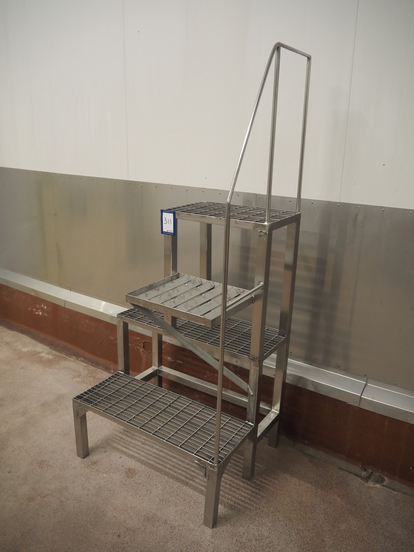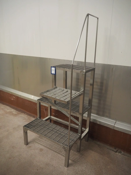 S/s stairs, 3 steps, working height: 1110 mm, total dimensions: 750 mm x 600 mm x 1700 mm.