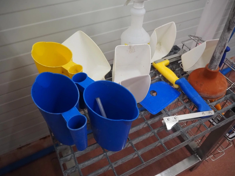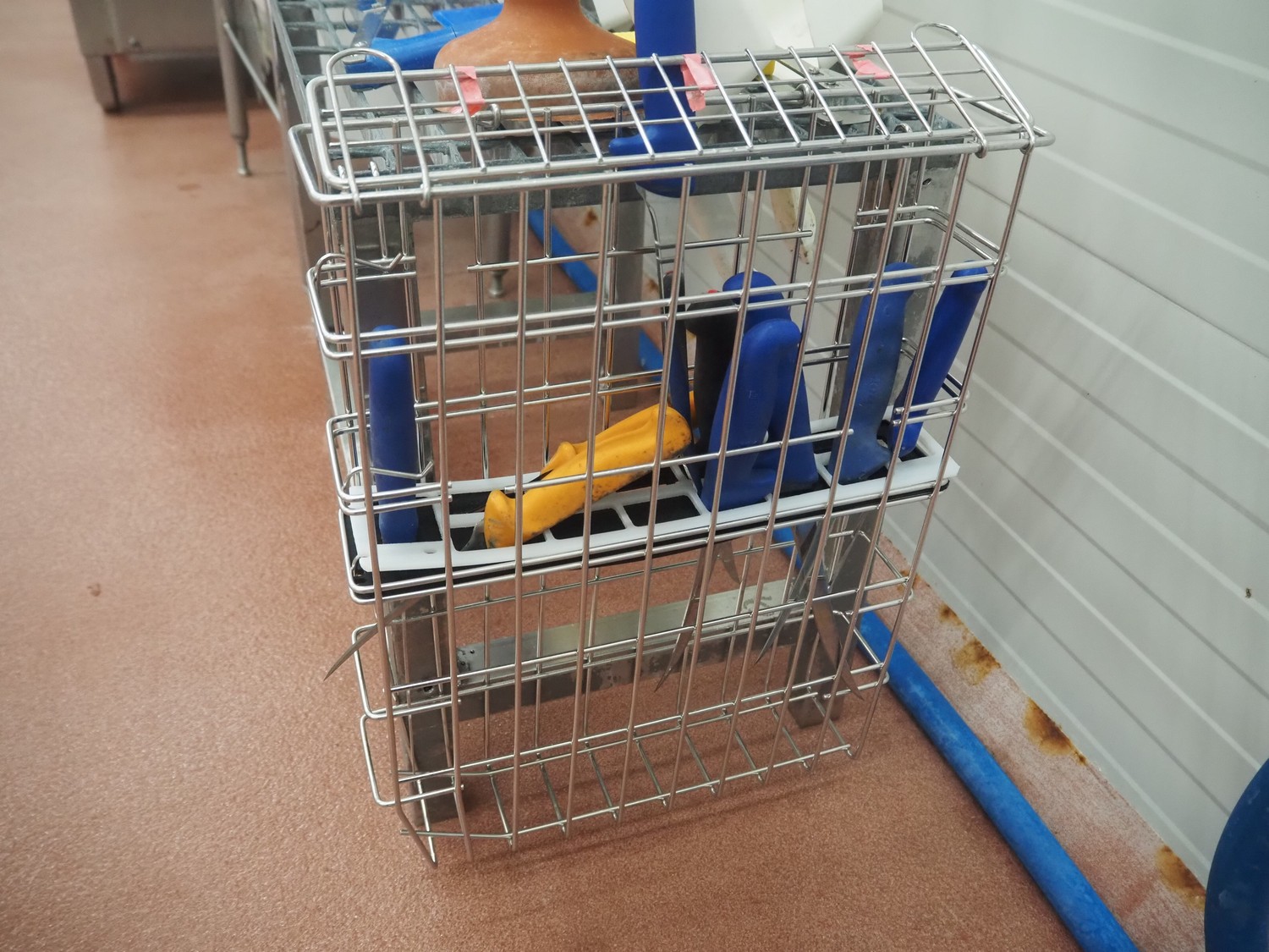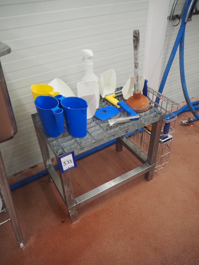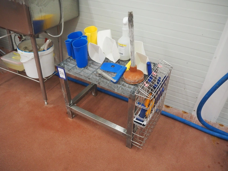 S/s and steel platform with knife basket, dimensions: 700 mm x 500 mm x 600 mm.