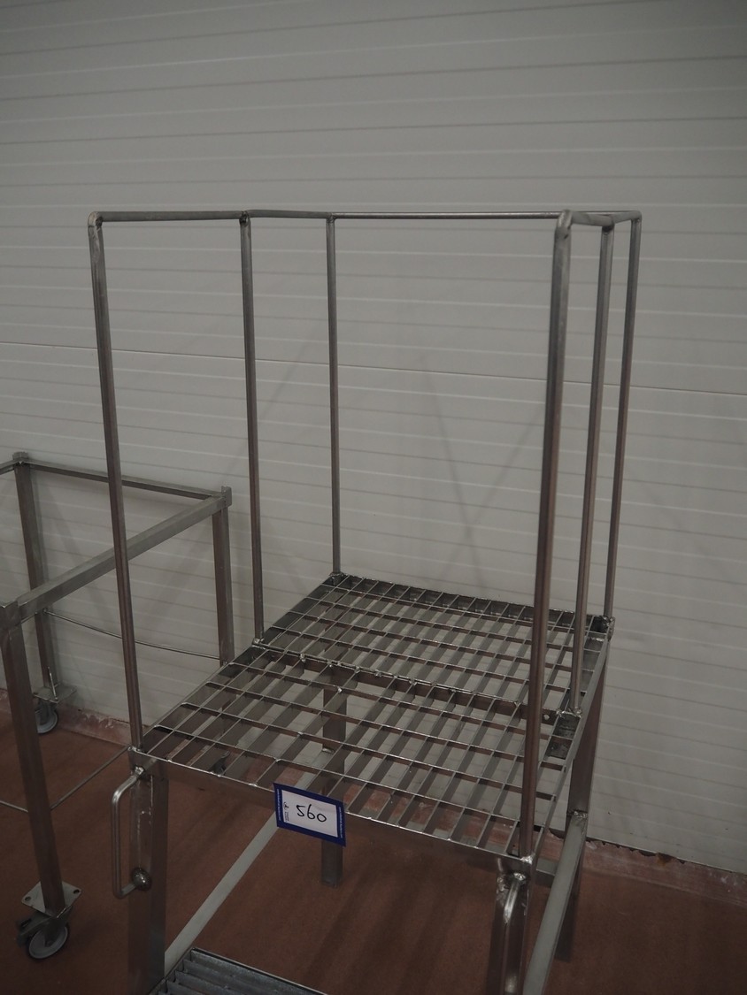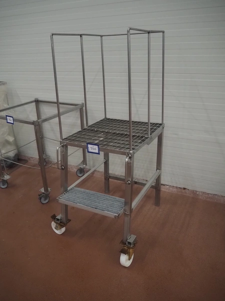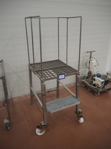 Mobile s/s platform with stairs, working height: 820 mm, total dimensions: 850 mm x 570 mm x 1530 mm.
