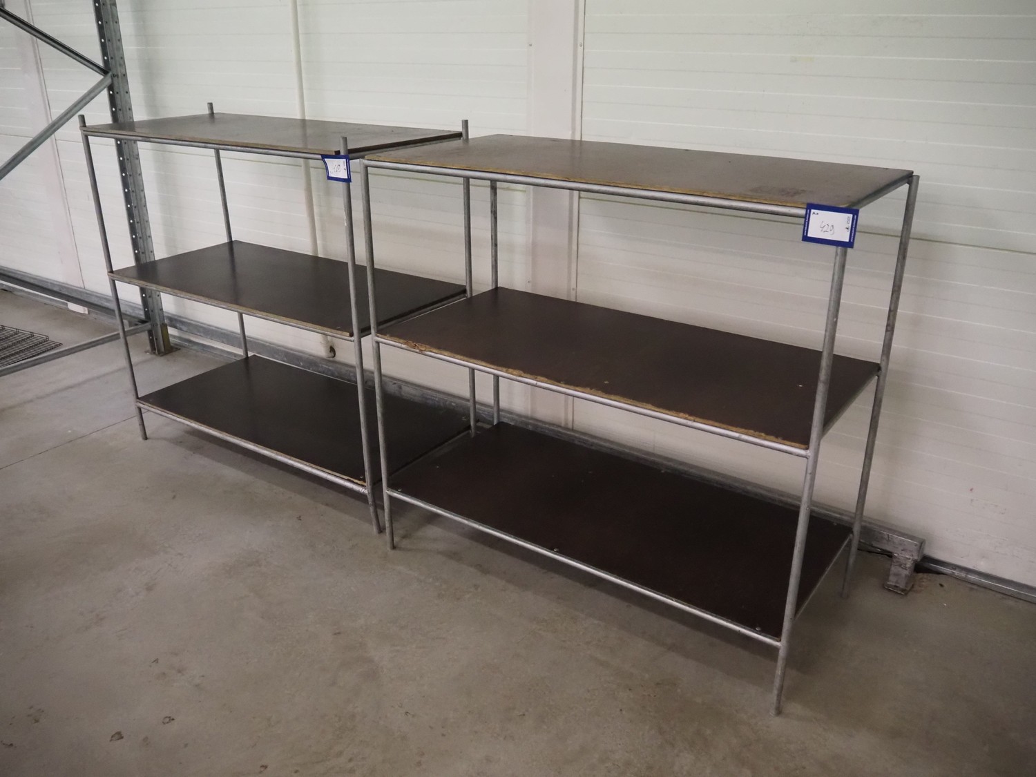 2 s/s racks, 3 floors, dimensions: (2x) 1300 mm x 600 mm x 1270 mm.