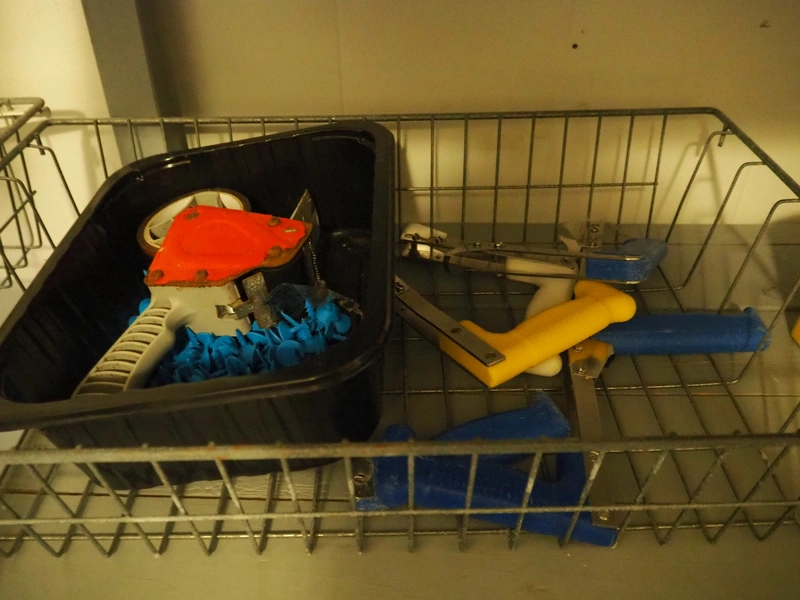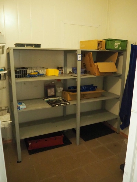 Wooden rack with content, dimensions: 1950 mm x 570 mm x 1620 mm.
