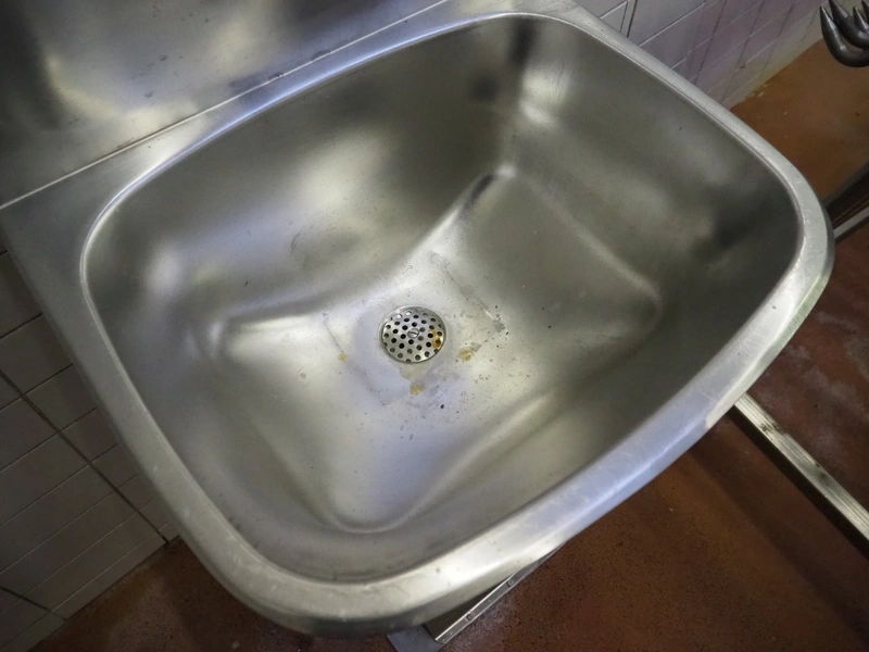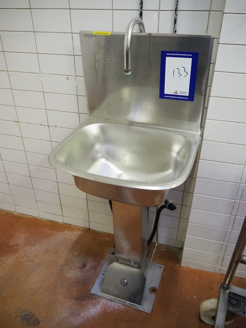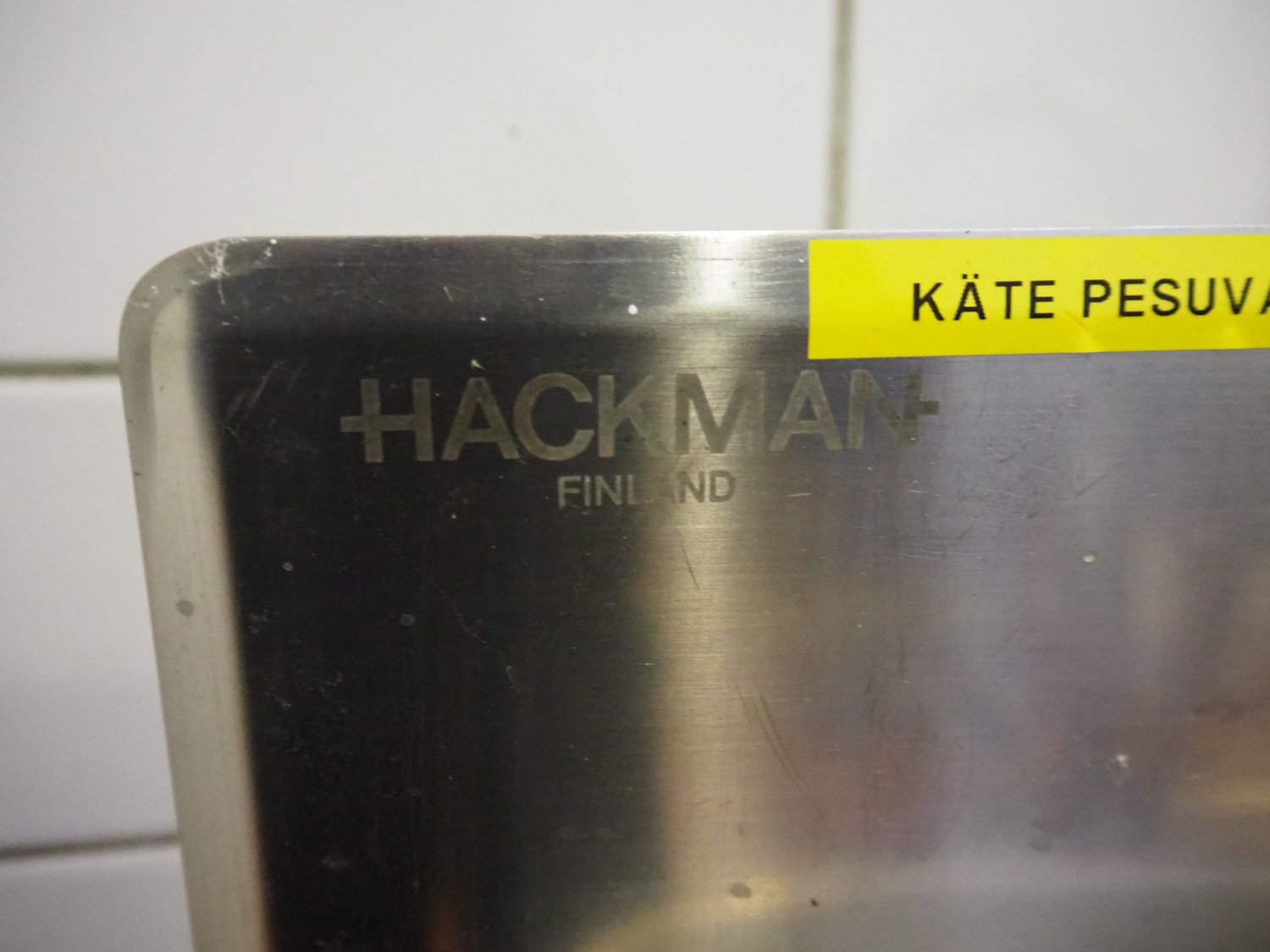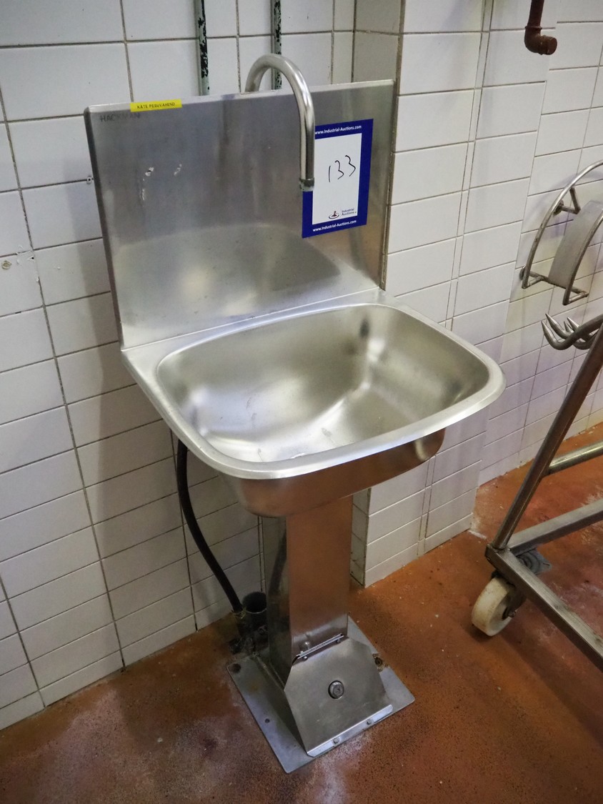 Hackman s/s sink, foot control, dimensions: 570 mm x 520 mm x 1380 mm.