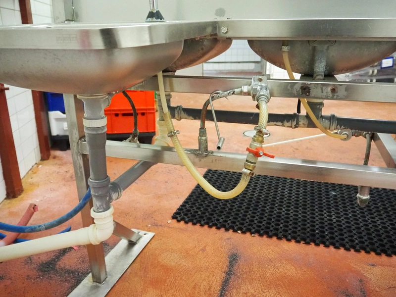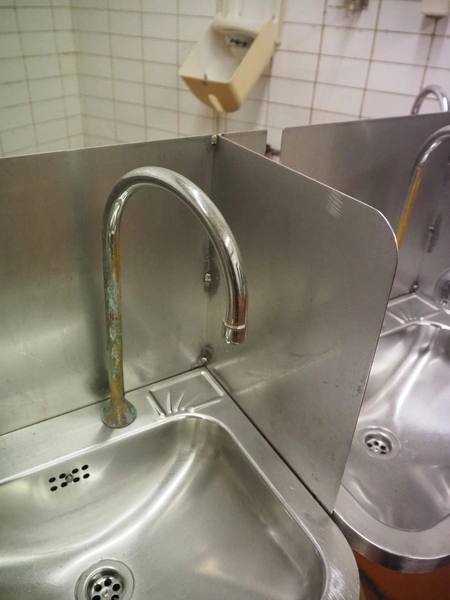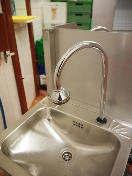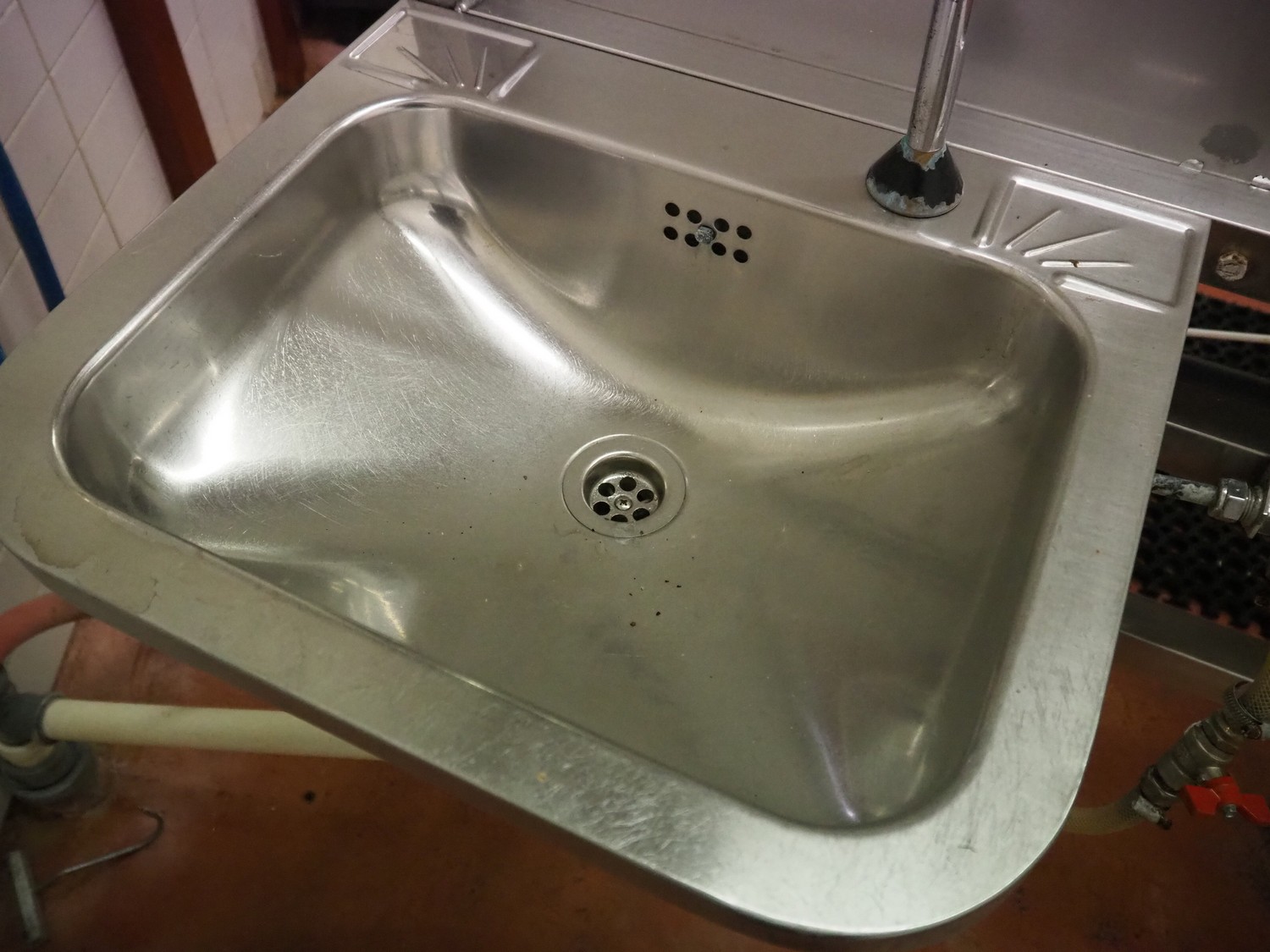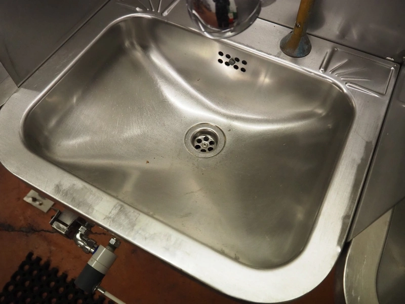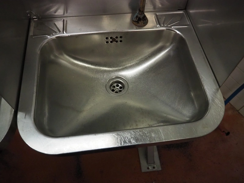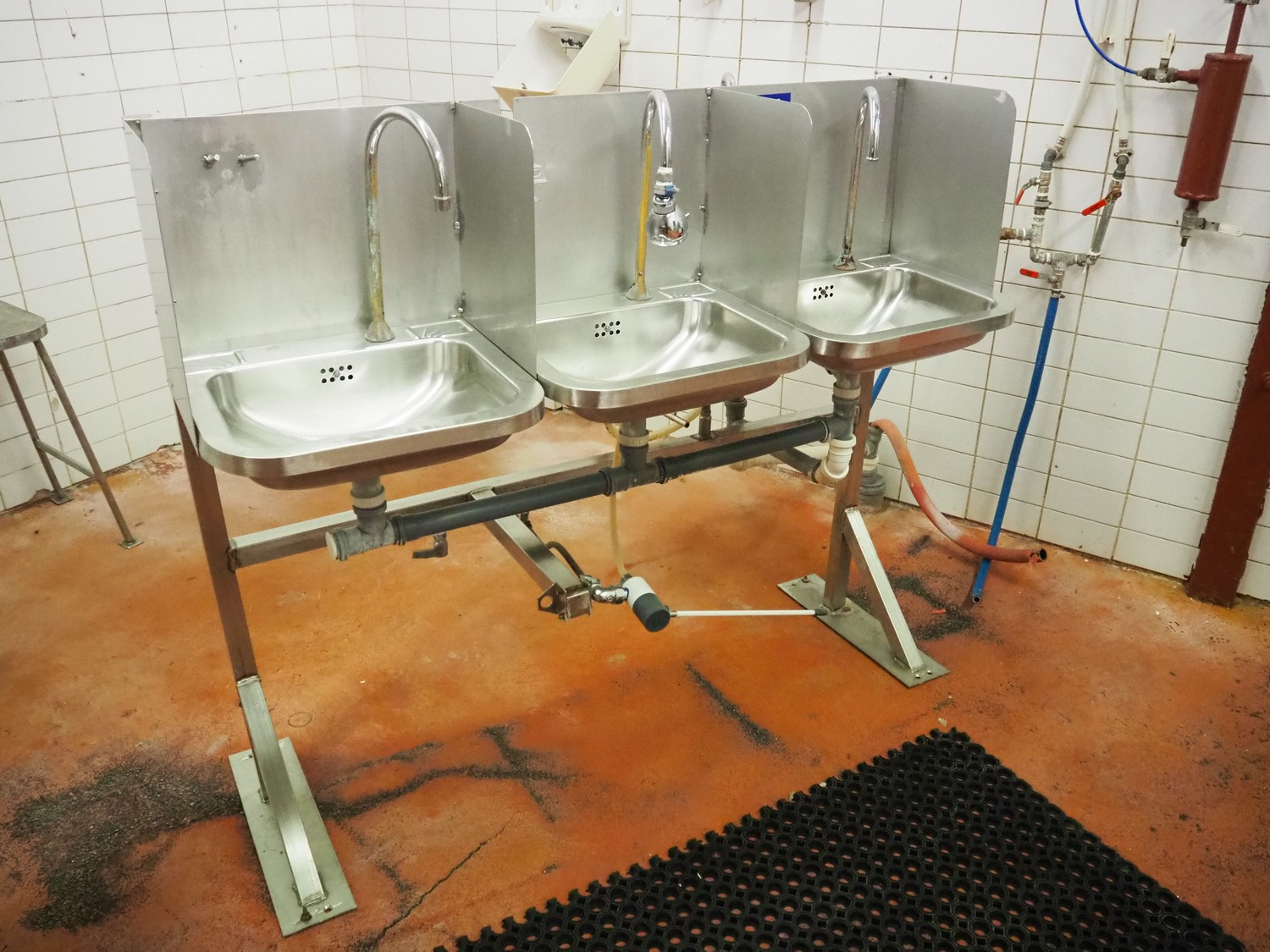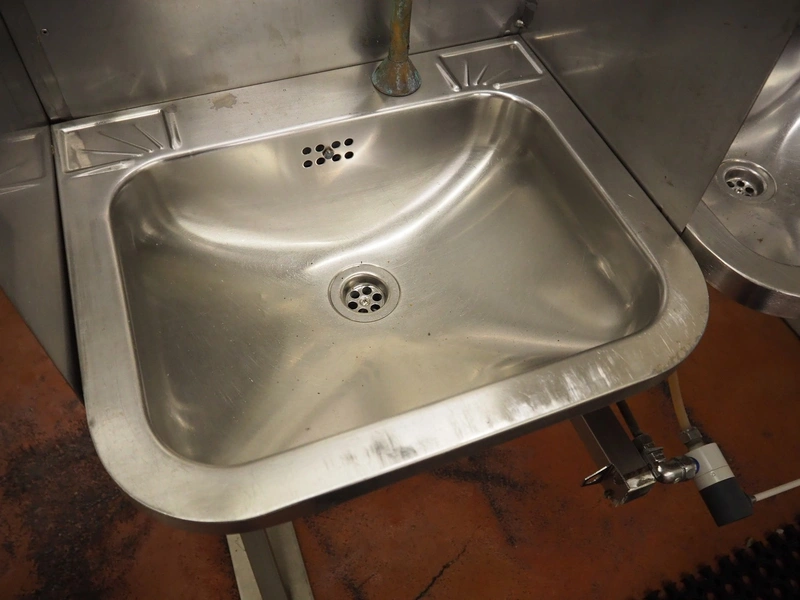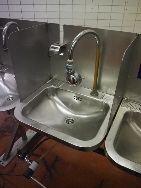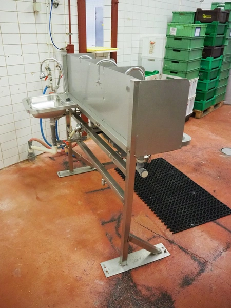 S/s frame with 4 s/s sinks, knee control, total dimensions: 1460 mm x 850 mm x 1250 mm.