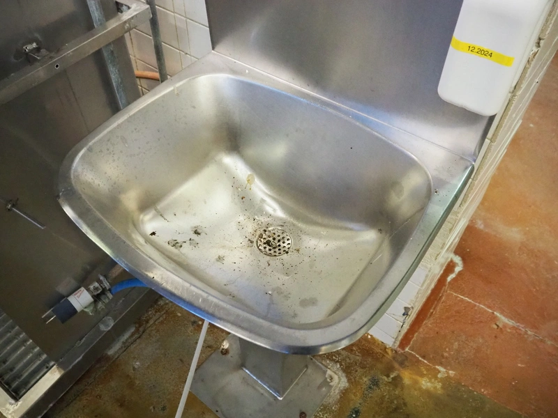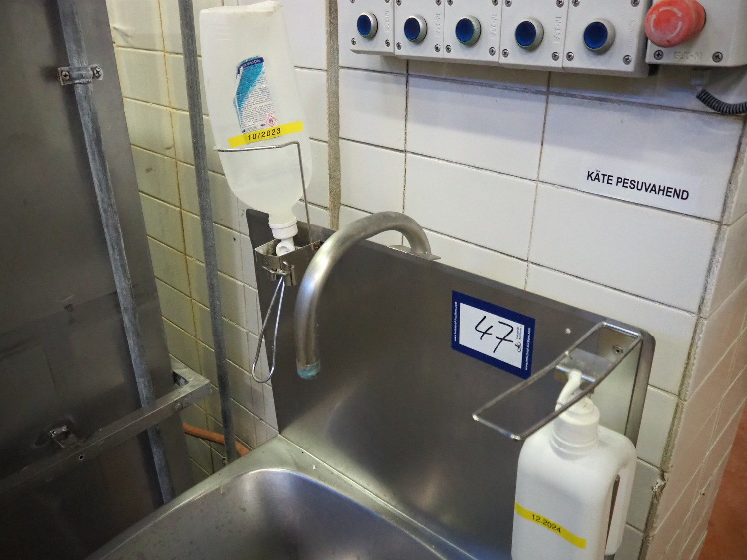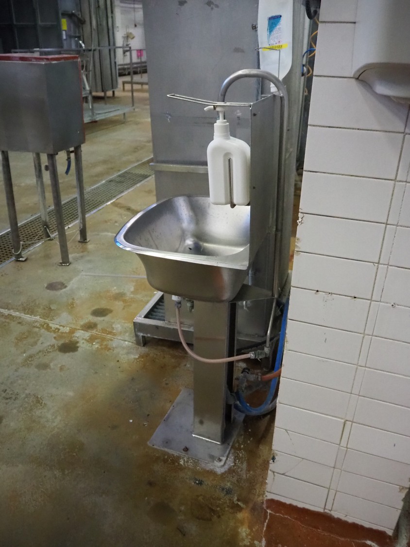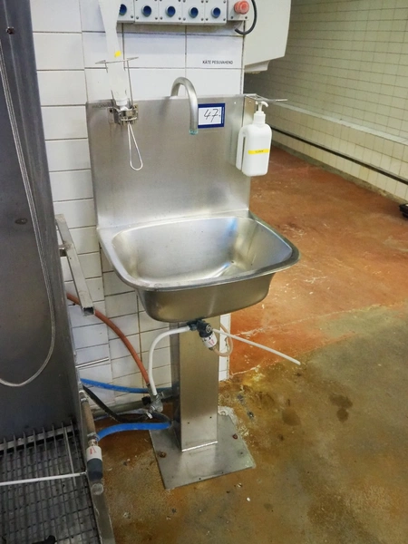 Hackman s/s sink, foot control, dimensions: 570 mm x 510 mm x 1350 mm.