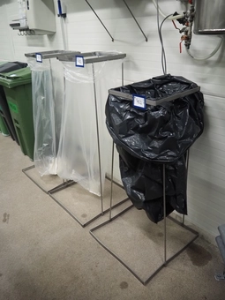 3 s/s waste bag holders, dimensions: (2x) 600 mm x 600 mm x 1250 mm and 600 mm x 600 mm x 1100 mm.€ 15,000 bids26/02/2026 15:00 -