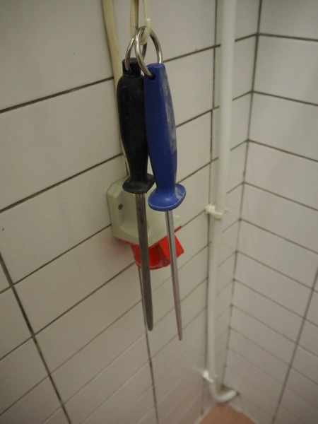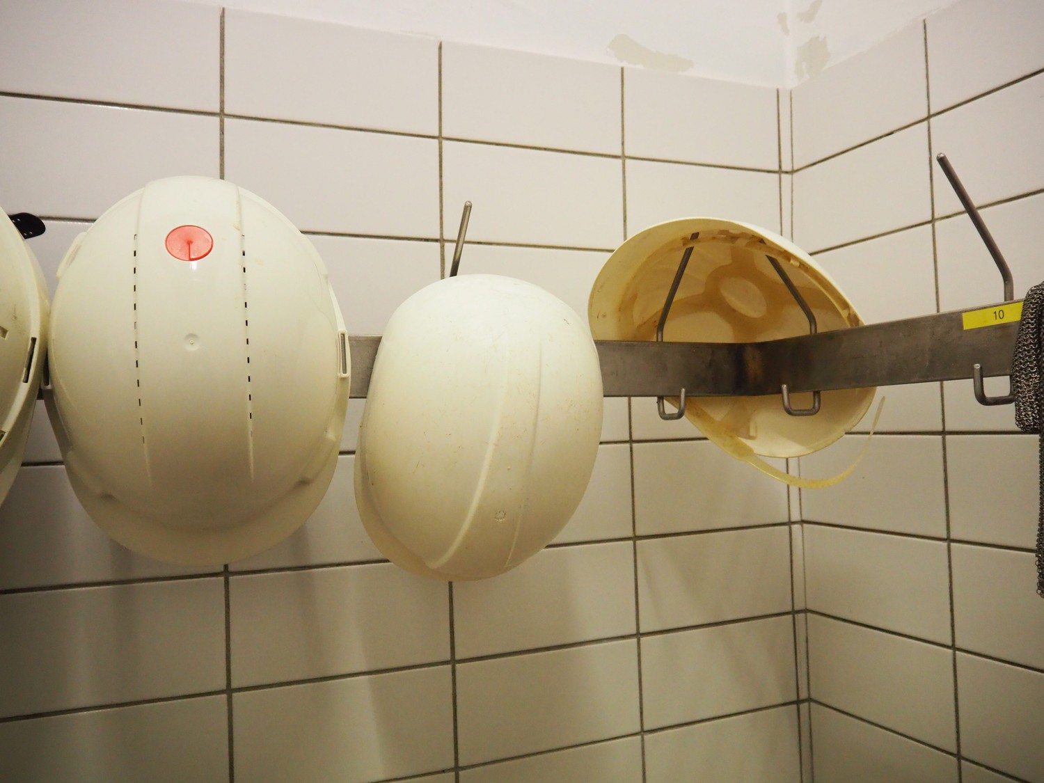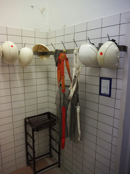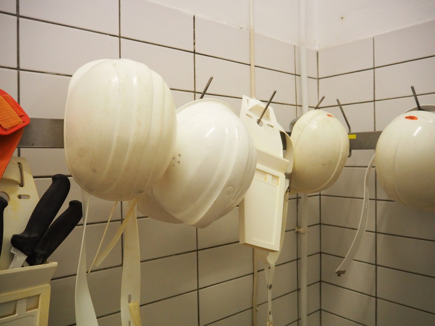 10 plastic safety helmets, 3 chainmail apron, 1 chainmail glove set and 4 plastic knife holders.