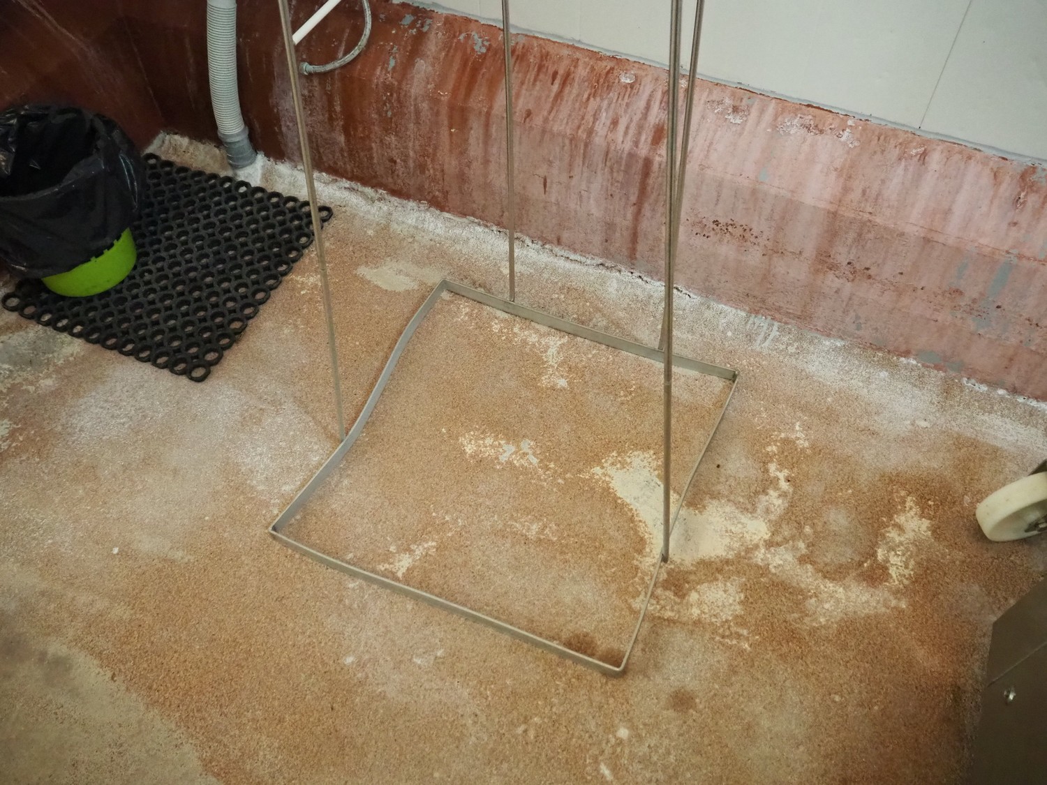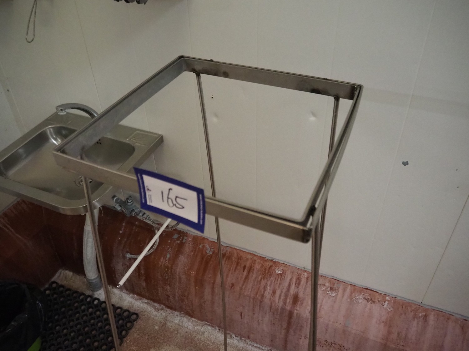 S/s waste bag holder, dimensions: 600 mm x 600 mm x 1380 mm.