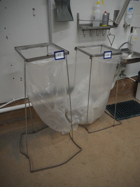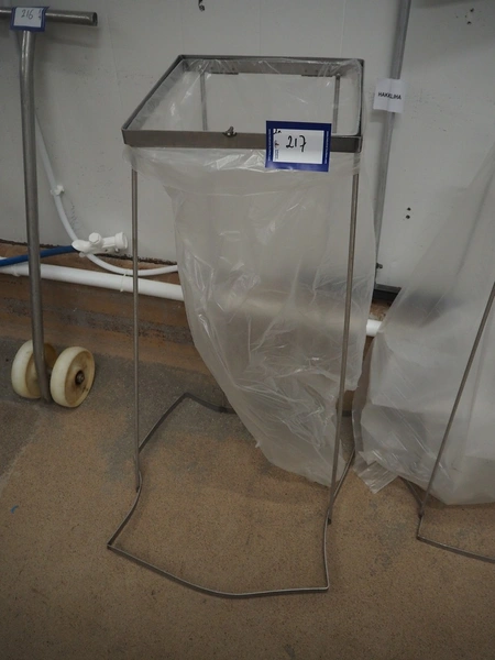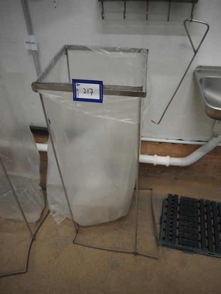 2 s/s waste bag holders, dimensions: (2x) 600 mm x 600 mm x 1050 mm.