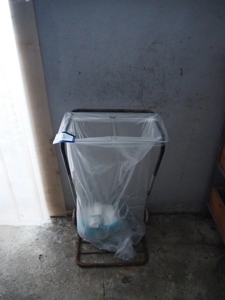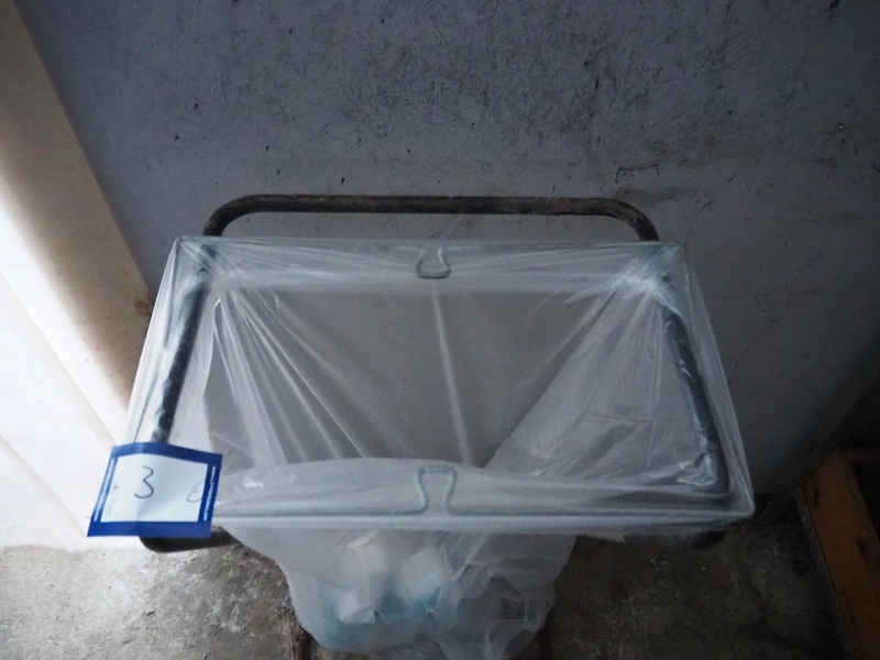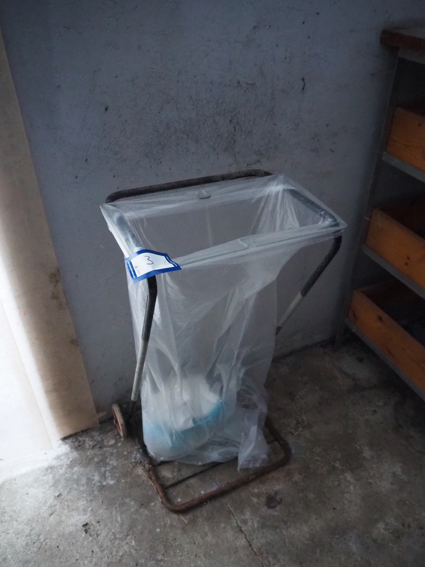 S/s mobile waste bag holder, dimensions: 490 mm x 400 mm x 910 mm.