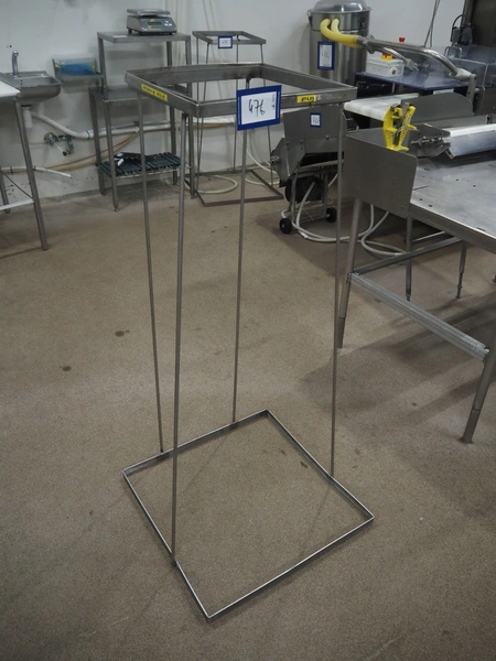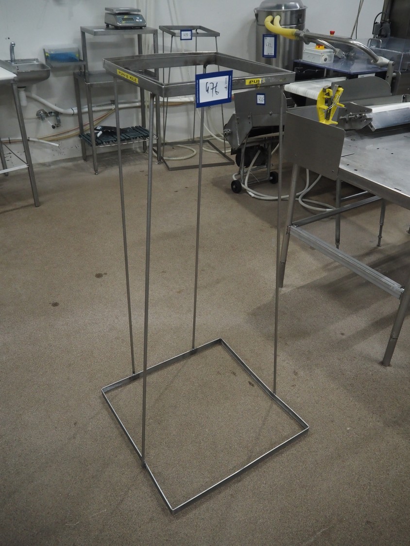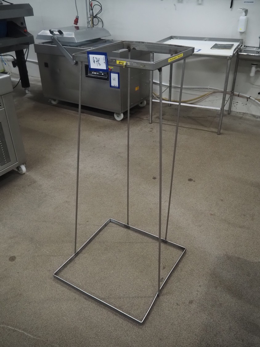 S/s waste bag holder, dimensions: 600 mm x 600 mm x 1250 mm.