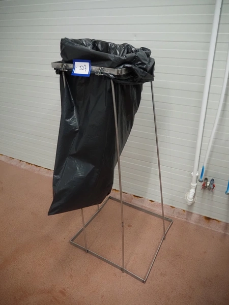 S/s waste bag holder, dimensions: 600 mm x 600 mm x 1300 mm.
