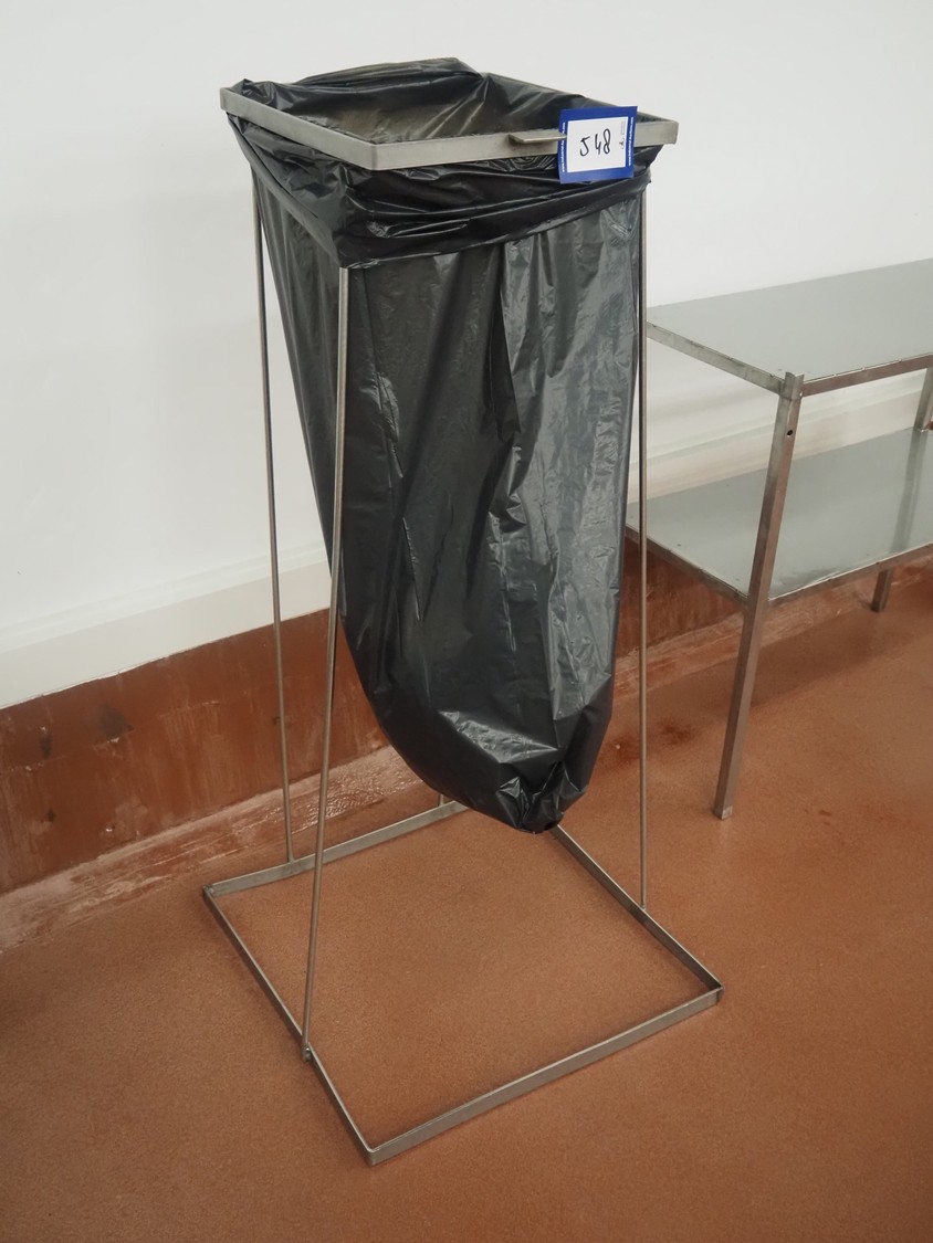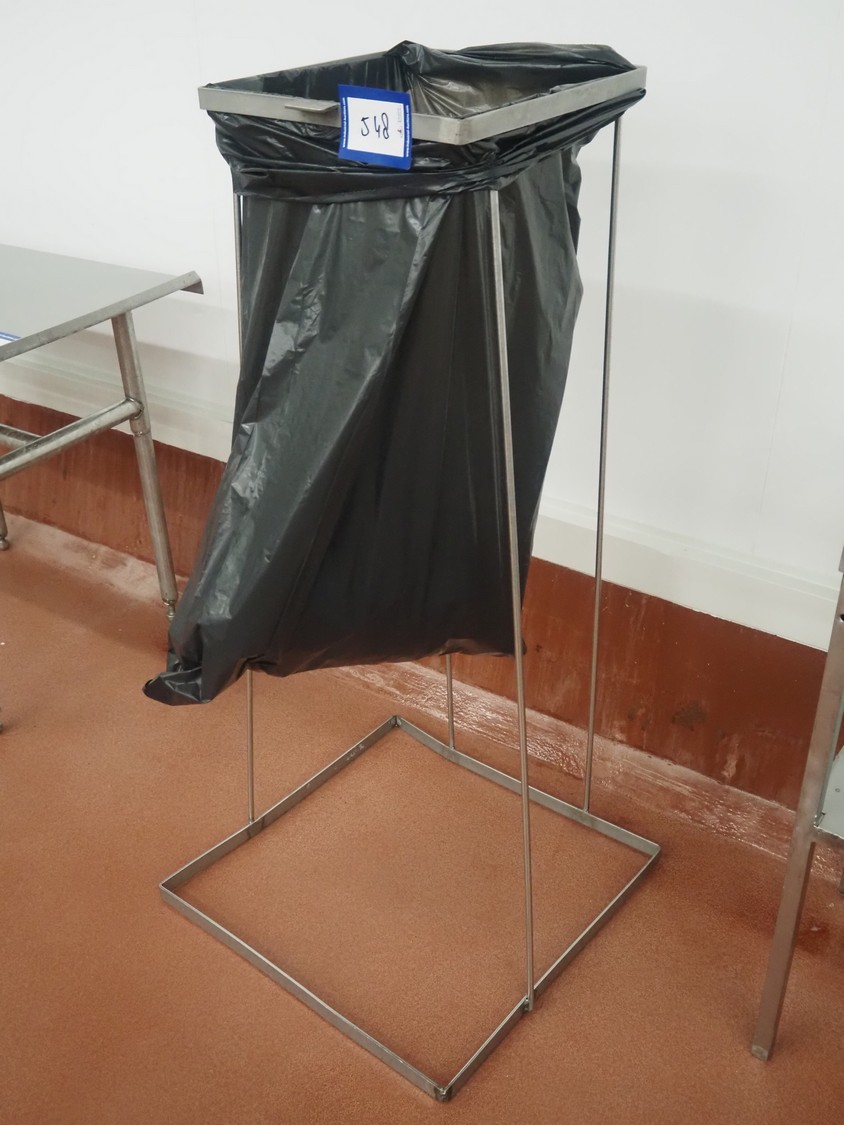 S/s waste bag holder, dimensions: 600 mm x 600 mm x 1300 mm.