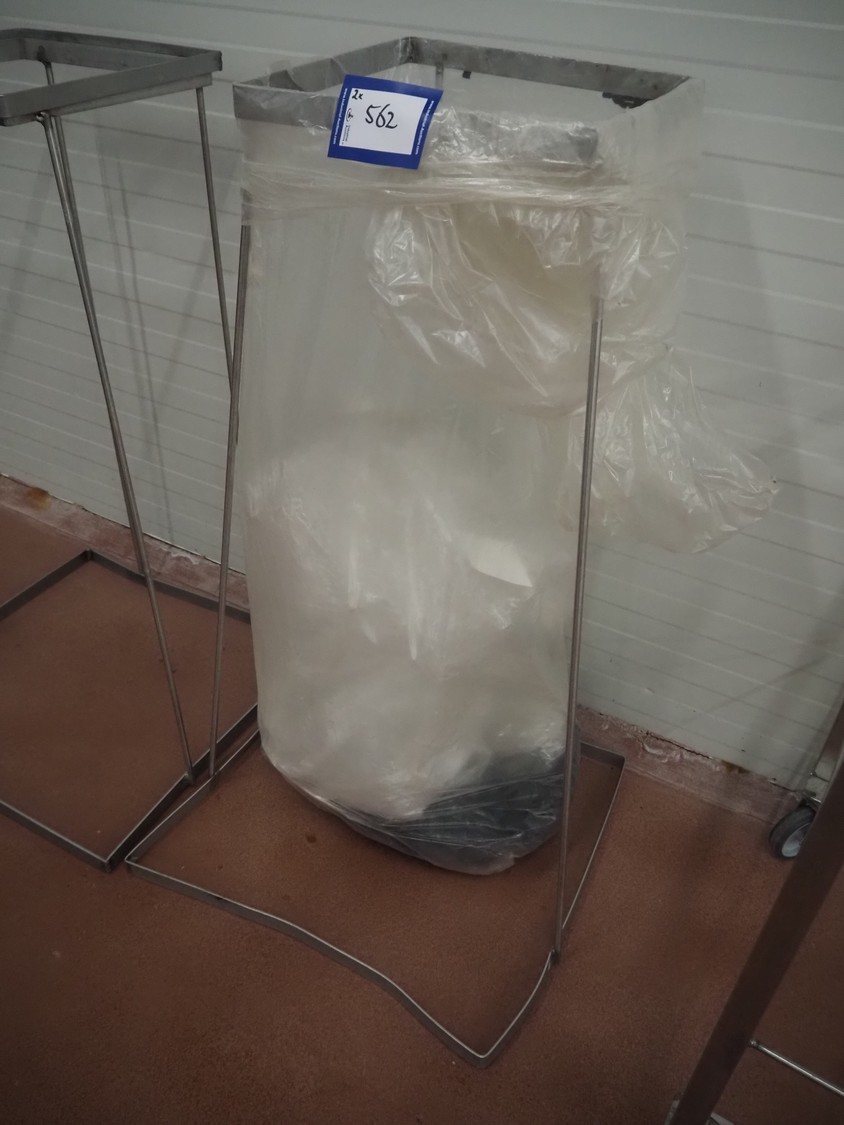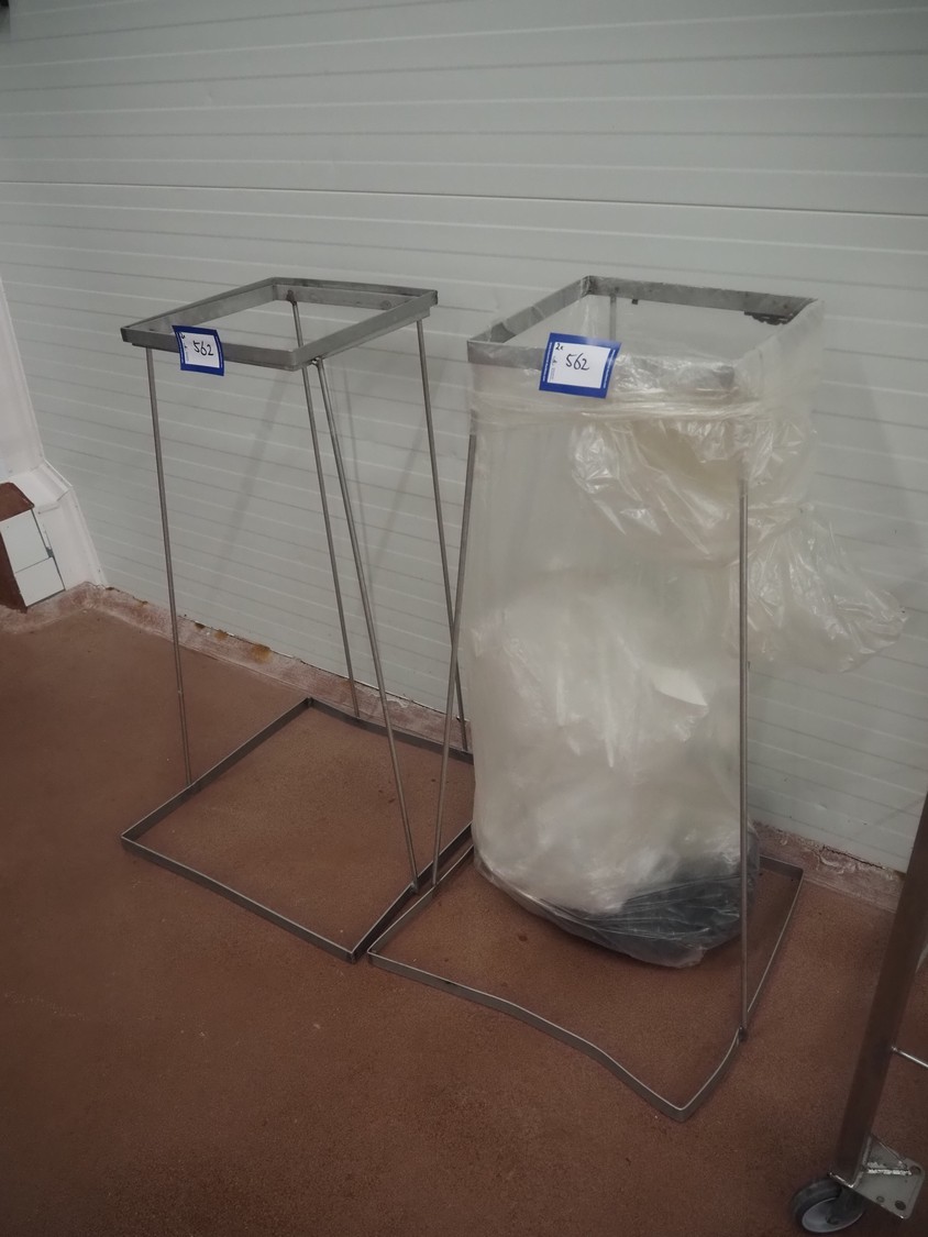 2 s/s waste bag holders, dimensions: (2x) 600 mm x 600 mm x 1100 mm.