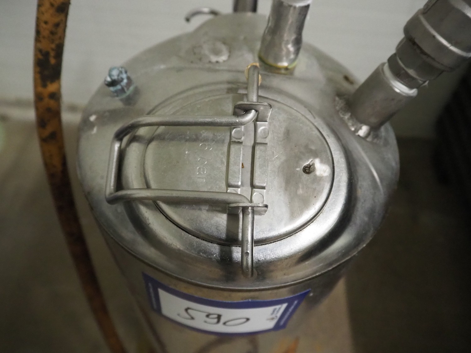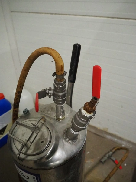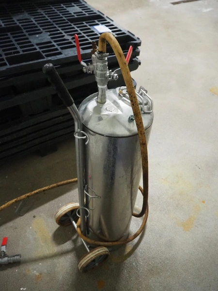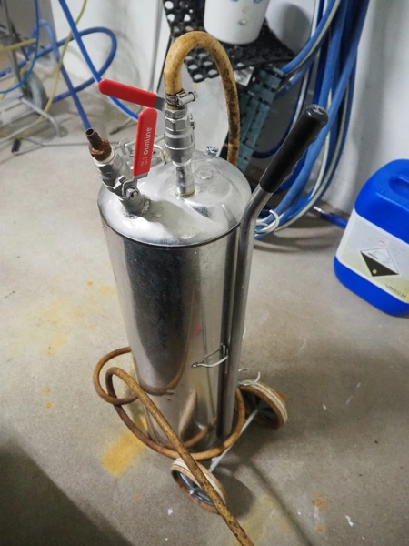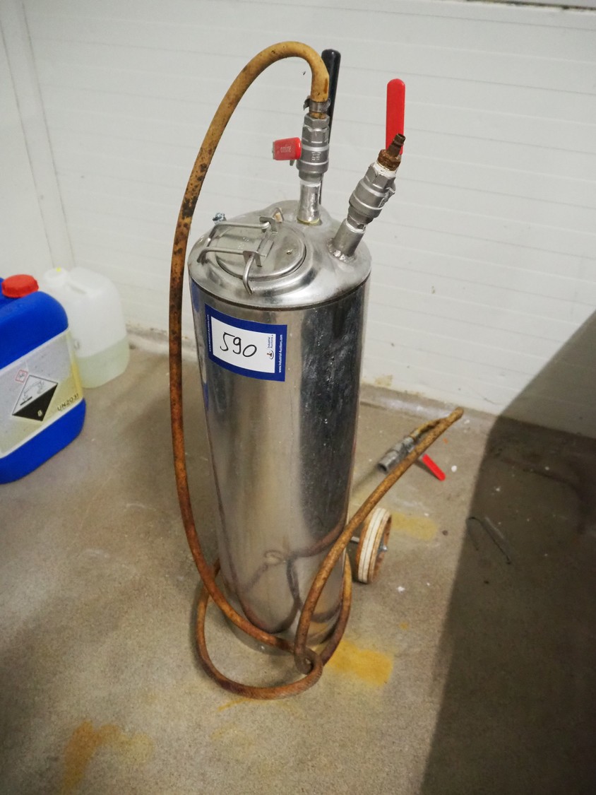 Mobile s/s pressure vessel for foam, dimensions: 200 mm x 300 mm x 900 mm.