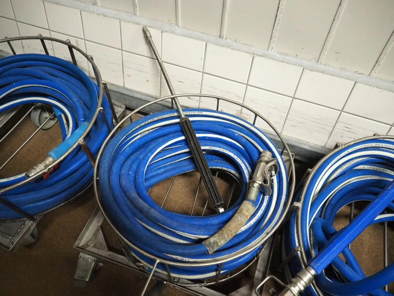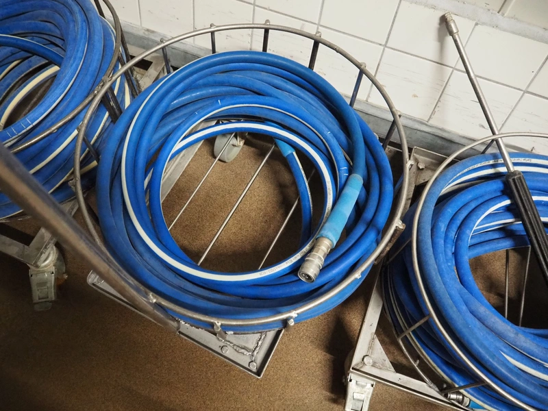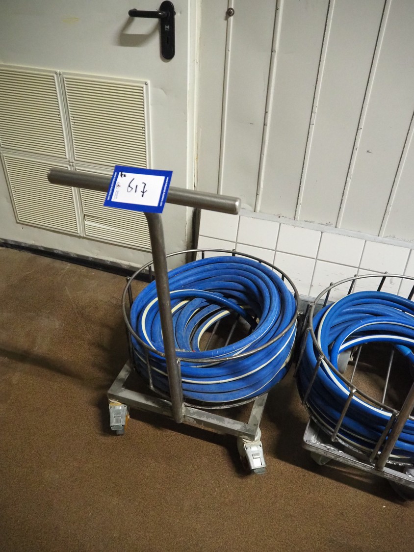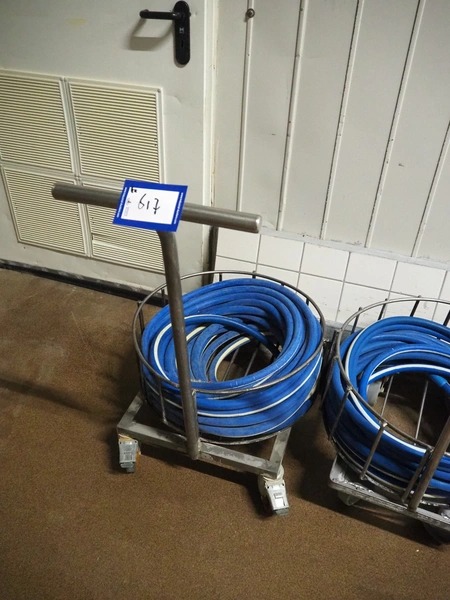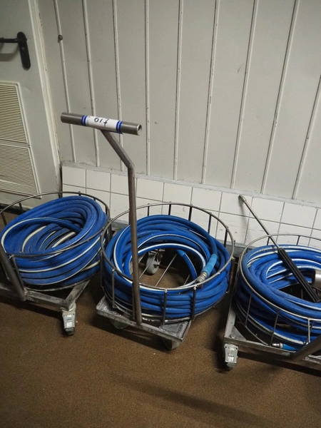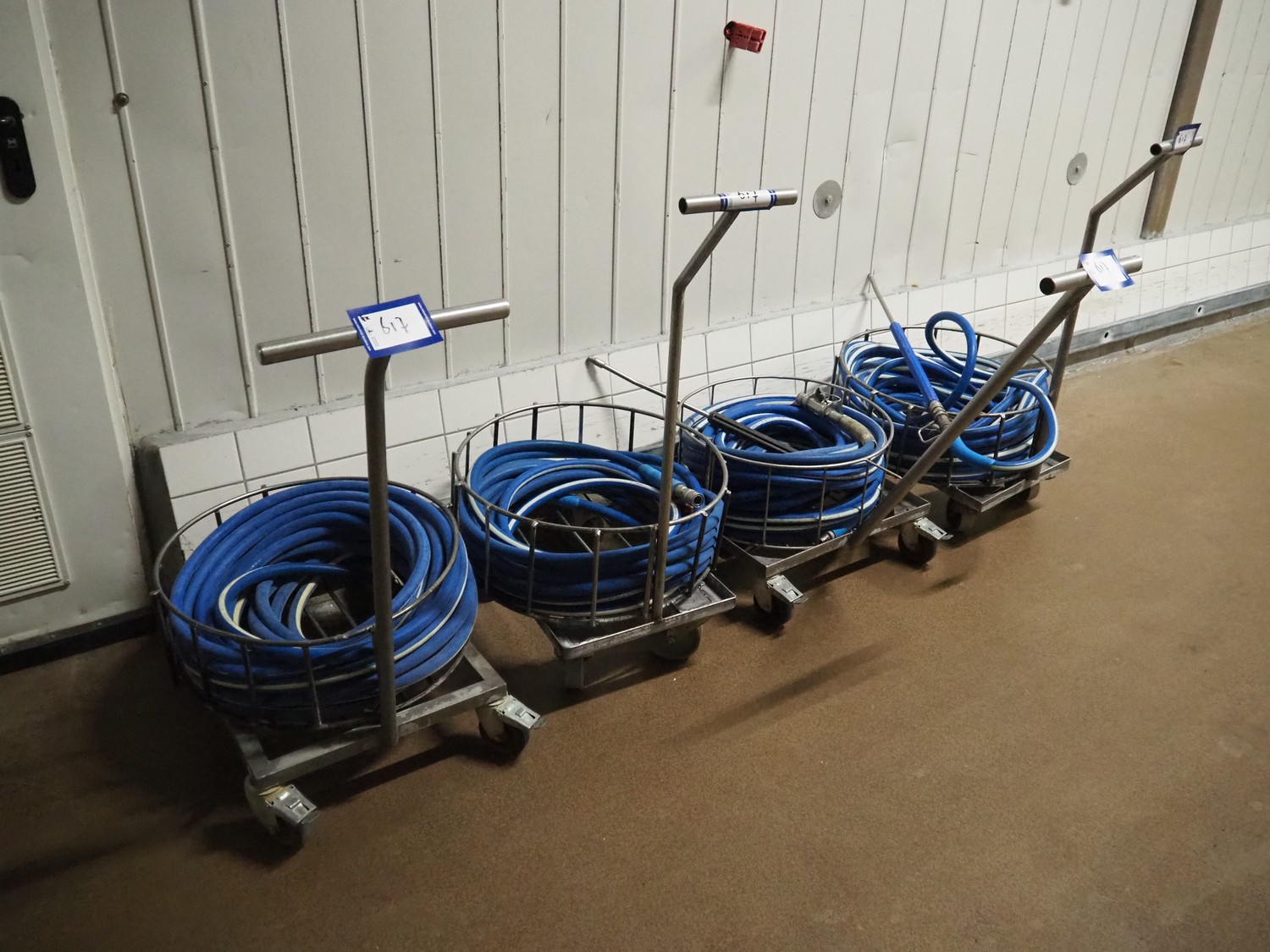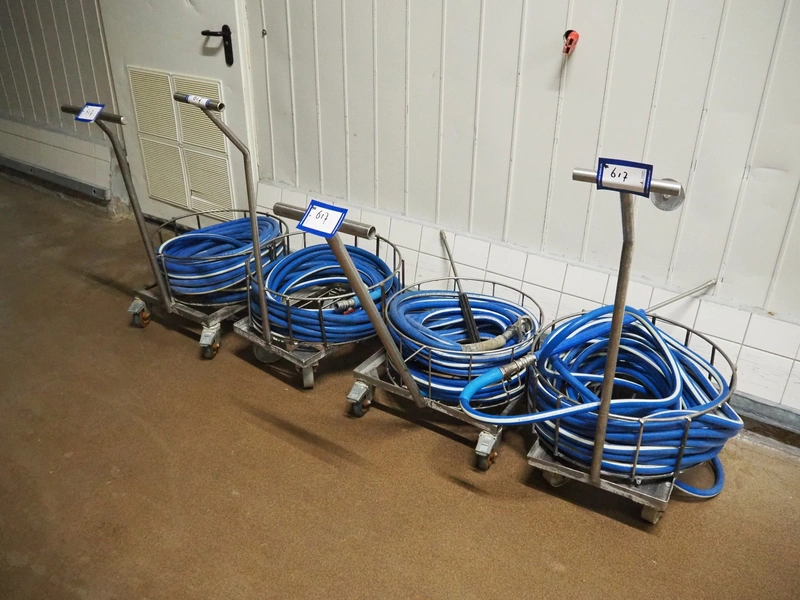 4 s/s trolleys with hose, dimensions: (4x) 800 mm x 500 mm x 950 mm.
