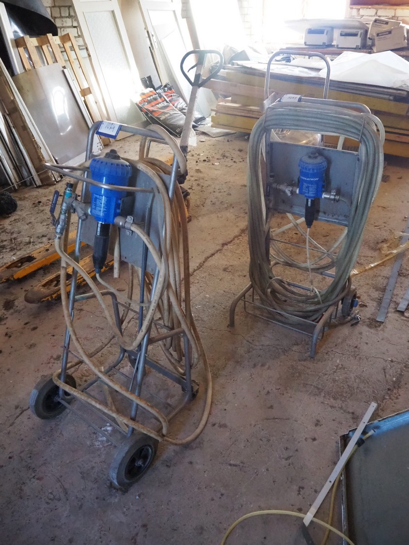 2 s/s foam mixing trolleys, dimensions: (2x) 550 mm x 500 mm x 1100 mm.