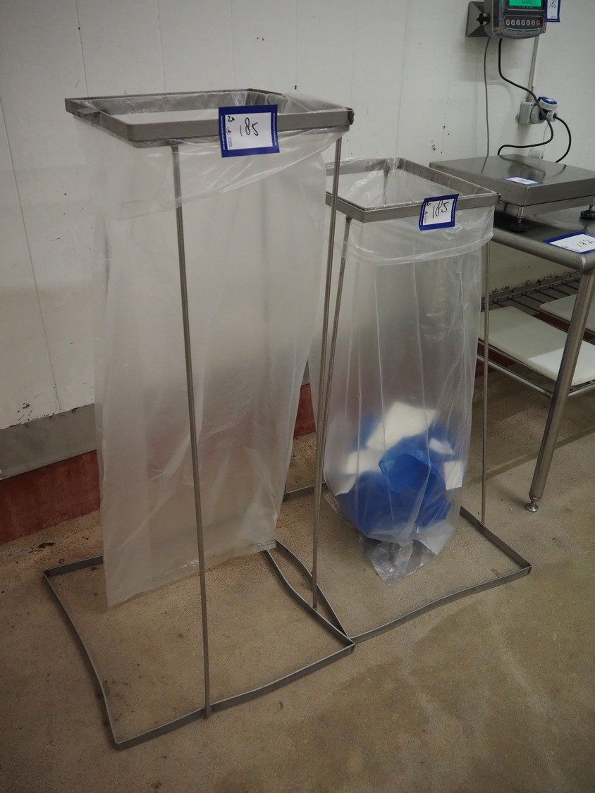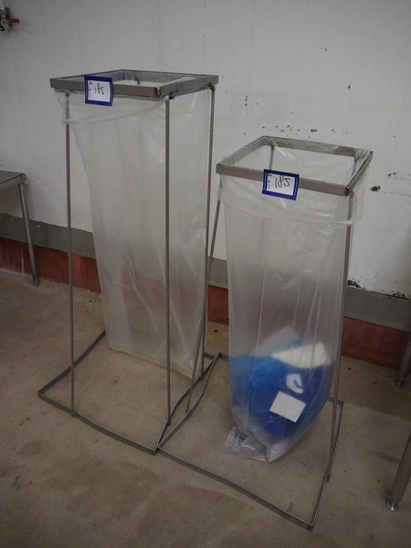 2 s/s waste bag holders, dimensions: 600 mm x 600 mm x 1080 mm and 600 mm x 600 mm x 1250 mm.
