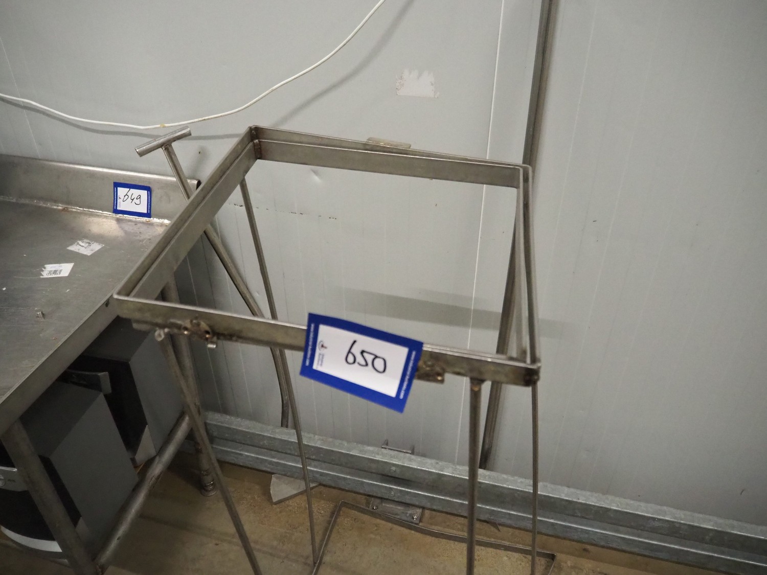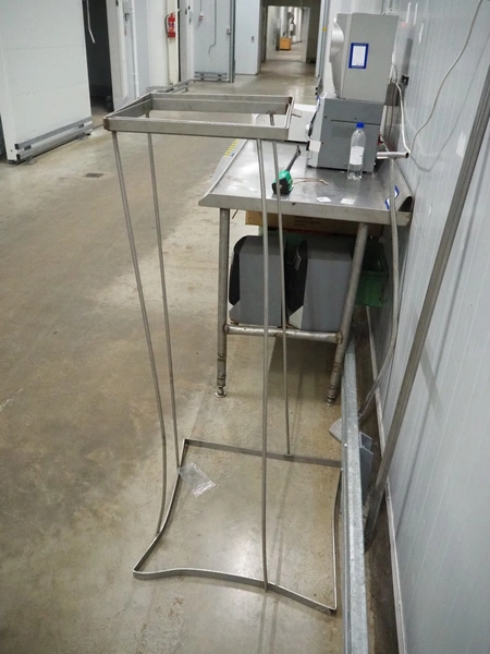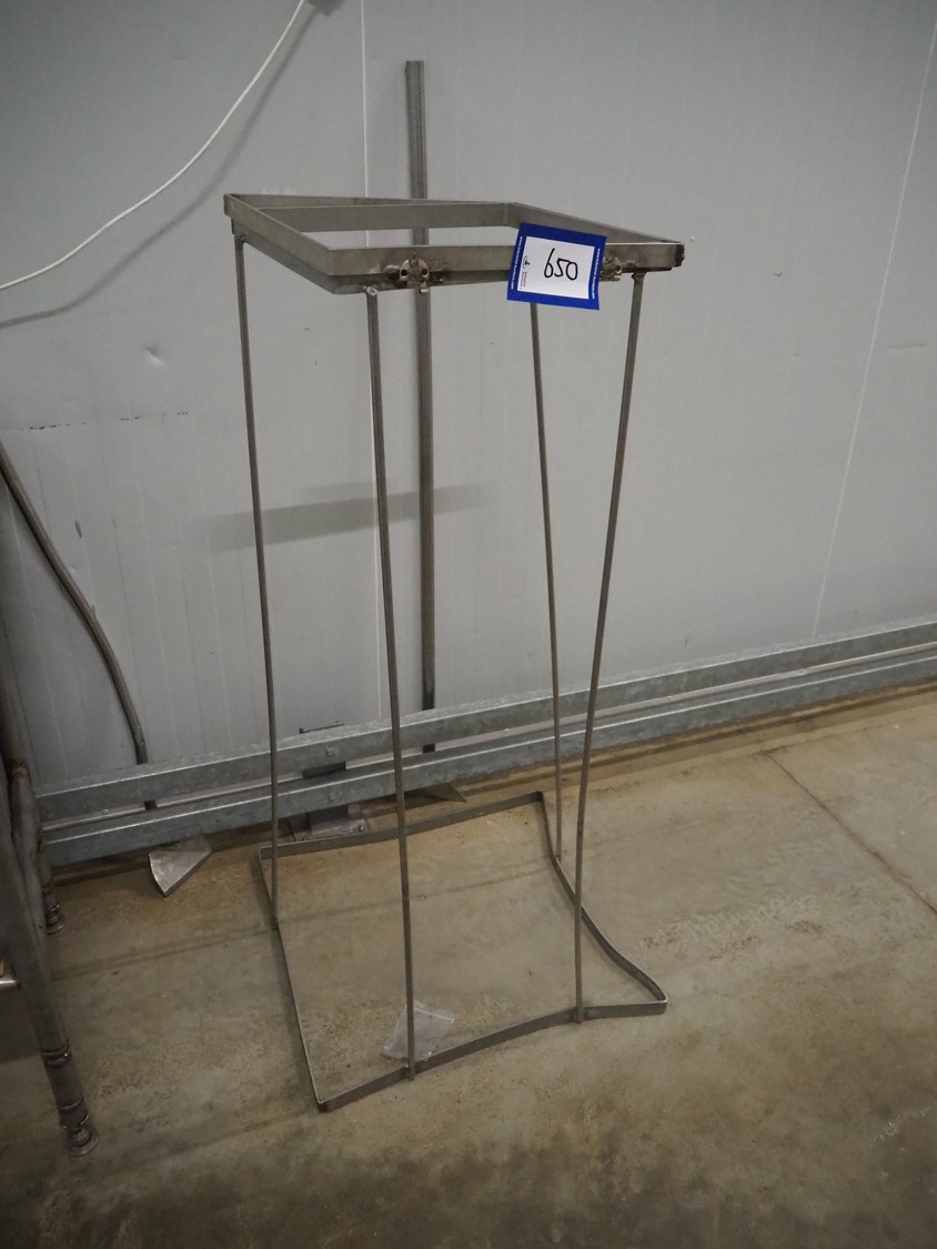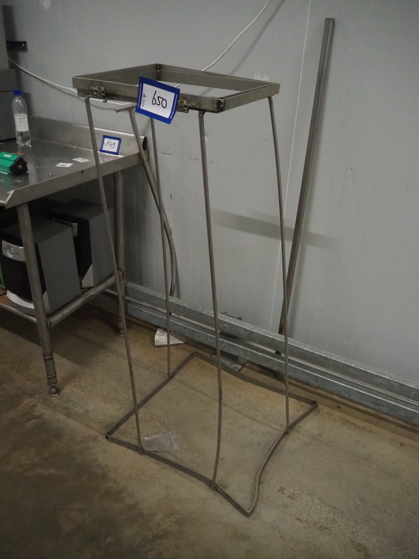 S/s waste bag holder, dimensions: 600 mm x 600 mm x 1300 mm.