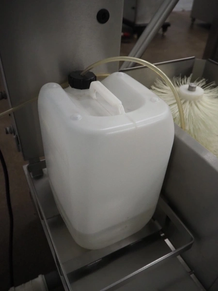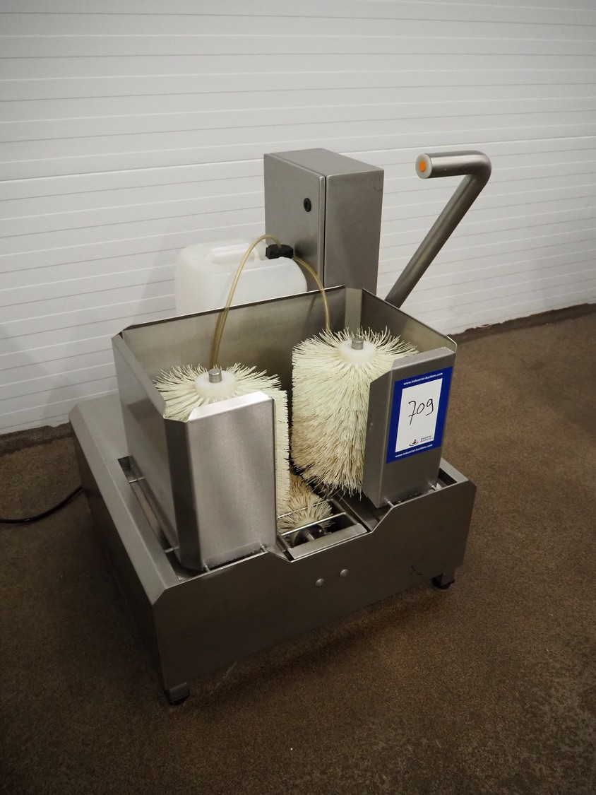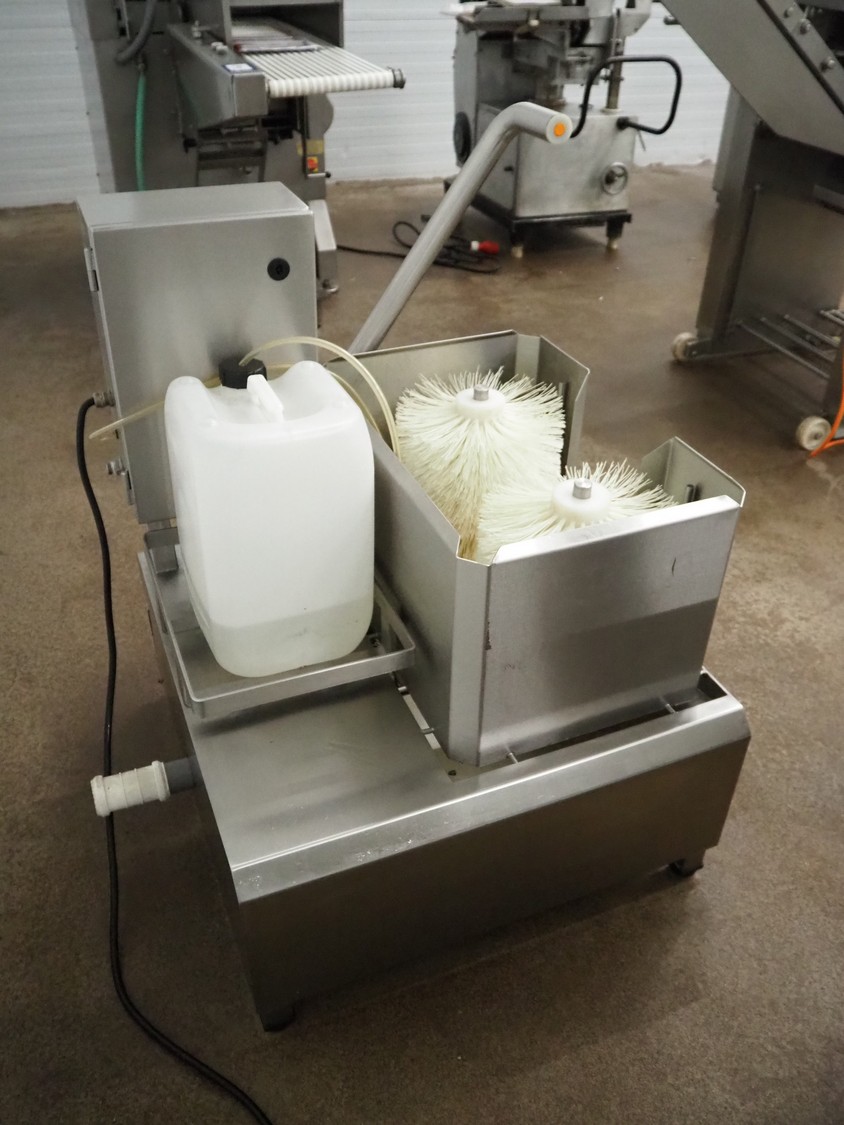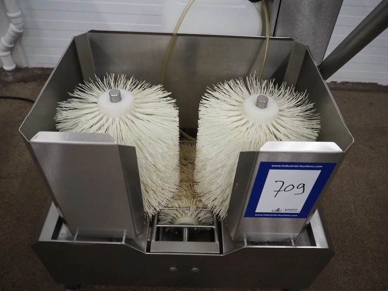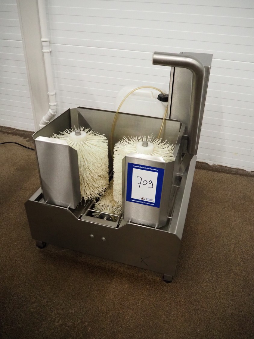 Kittner Anlagen- und Maschinenbau s/s boots cleaner, brush width: (3x) 300 mm, total dimensions: 730 mm x 790 mm x 1070 mm.
