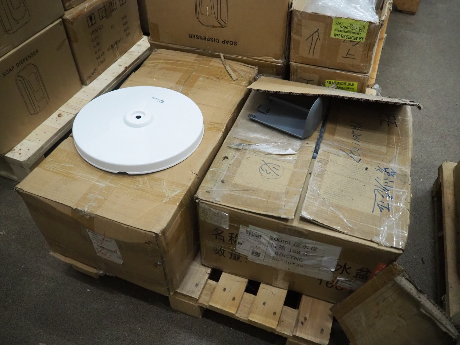2 pallets with various boxes with stands and for HändZ soap dispensers.