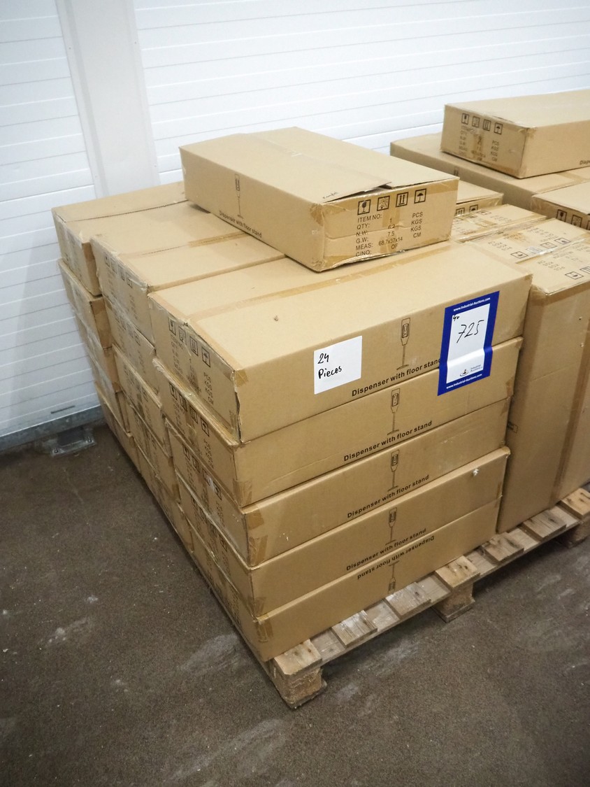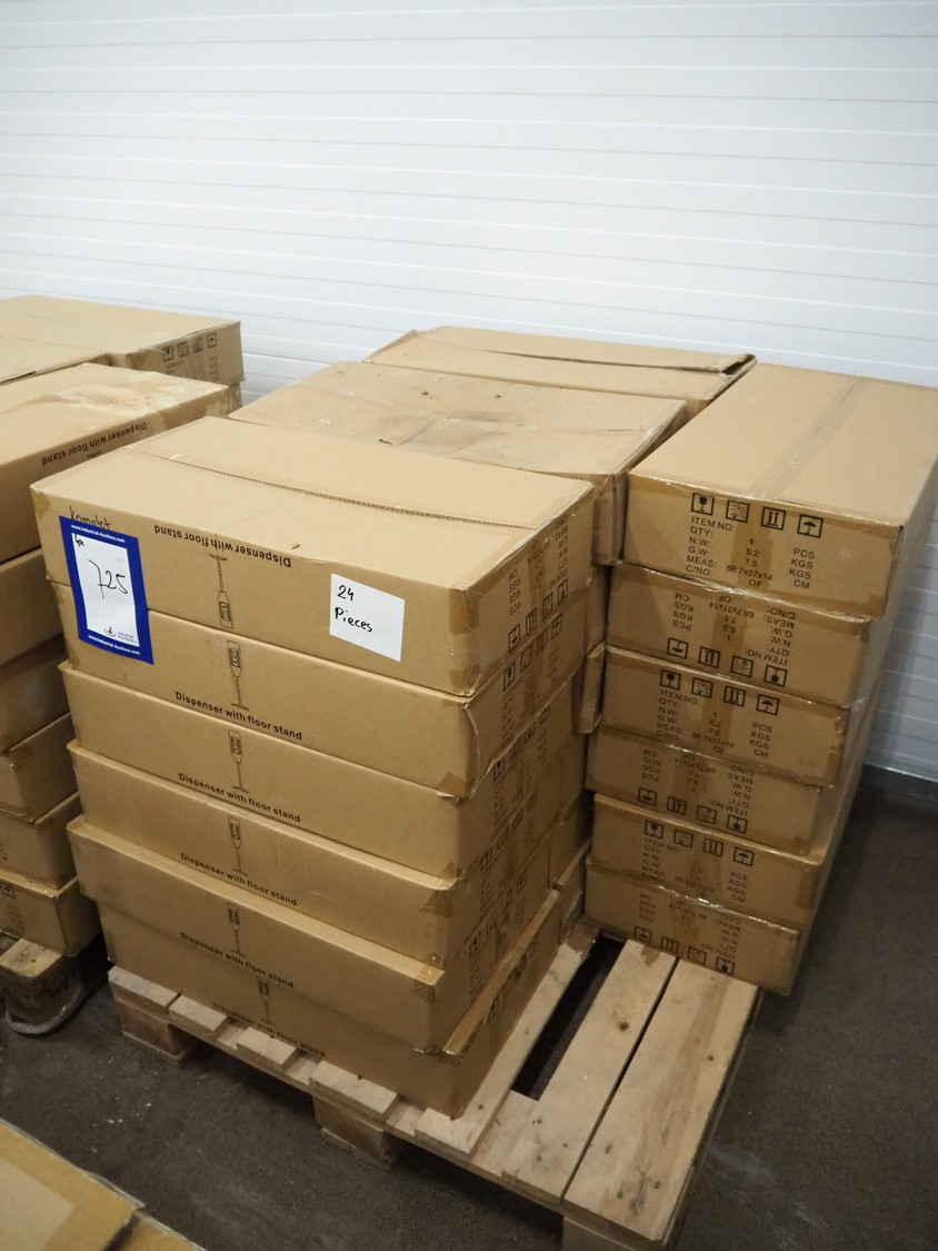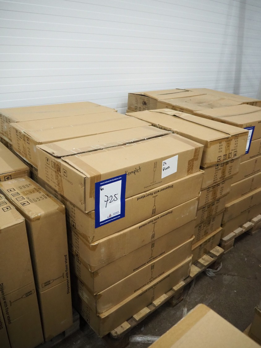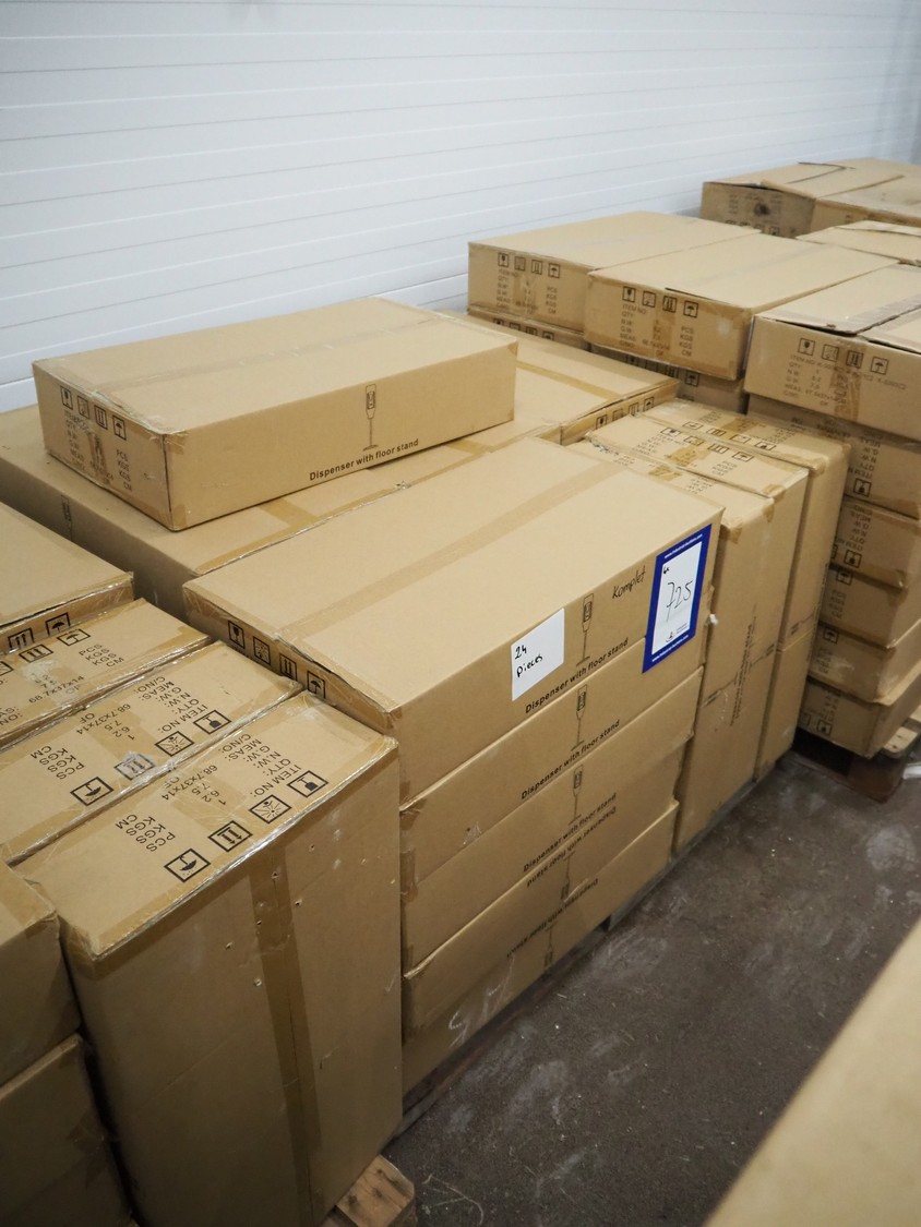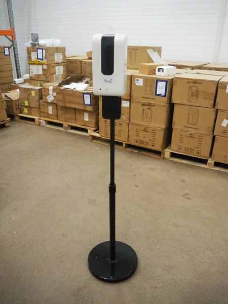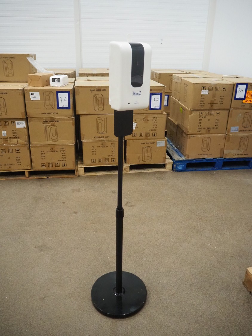 3 pallets with 72 boxes of HändZ automatic soap dispensers with floor stand, dimensions each dispenser: 355 mm x 355 mm x 1500 mm.