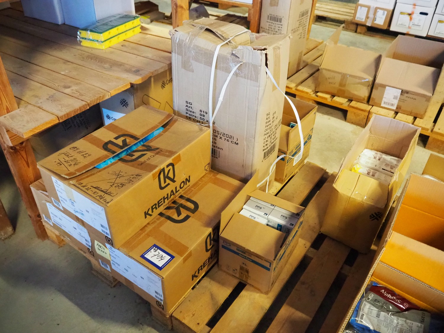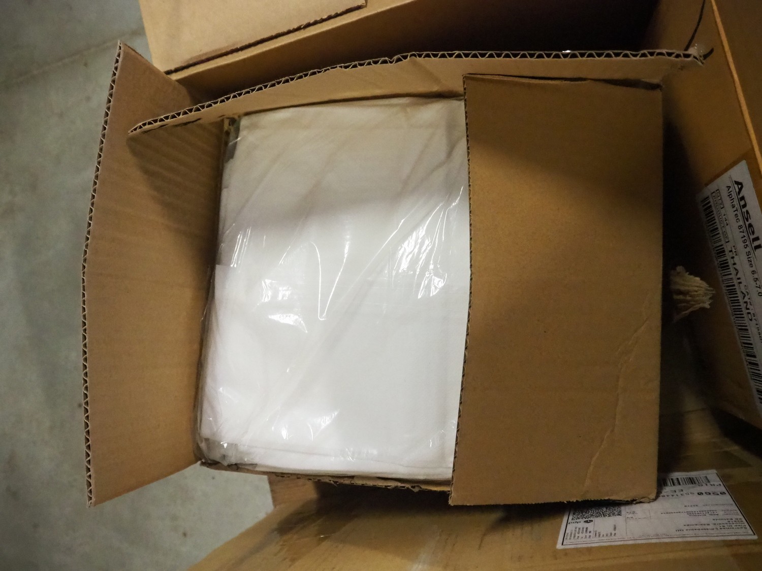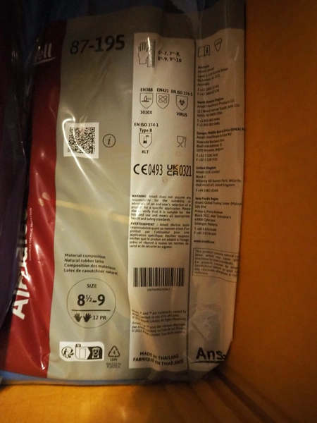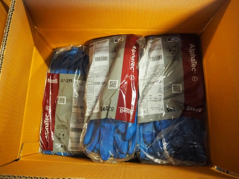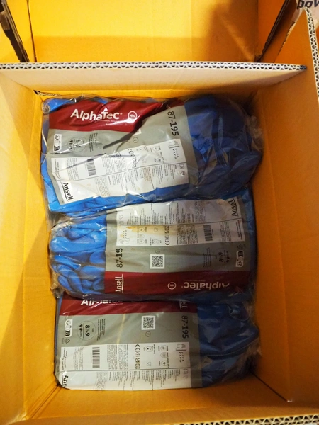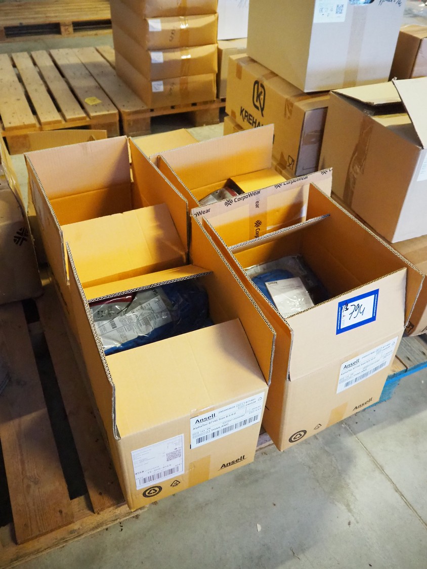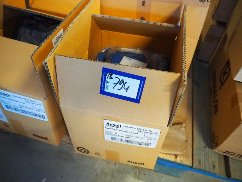 Pallet with 4 boxes with Ansell, AlphaTec and PPS Gloves rubber gloves.