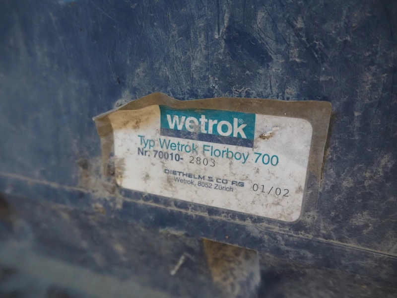Wetrok floor sweeper, type: Wetrok Florboy 700, number: 70010-2803, year of construction: 01/02, dimensions: 750 mm x 1100 mm x 1000 mm.