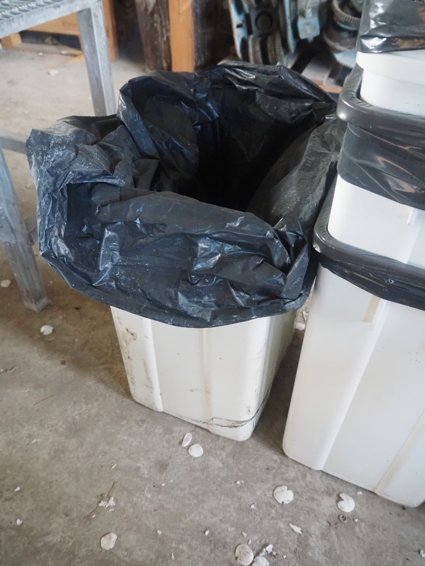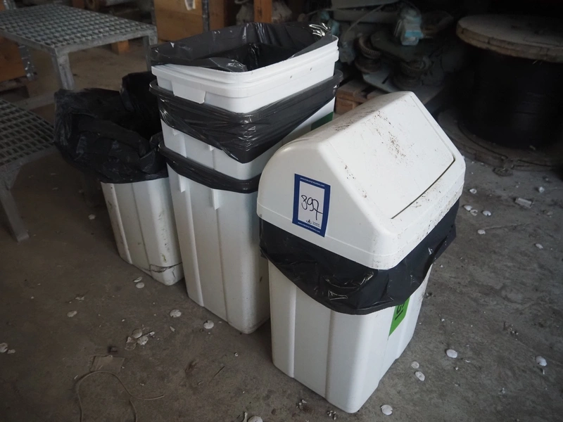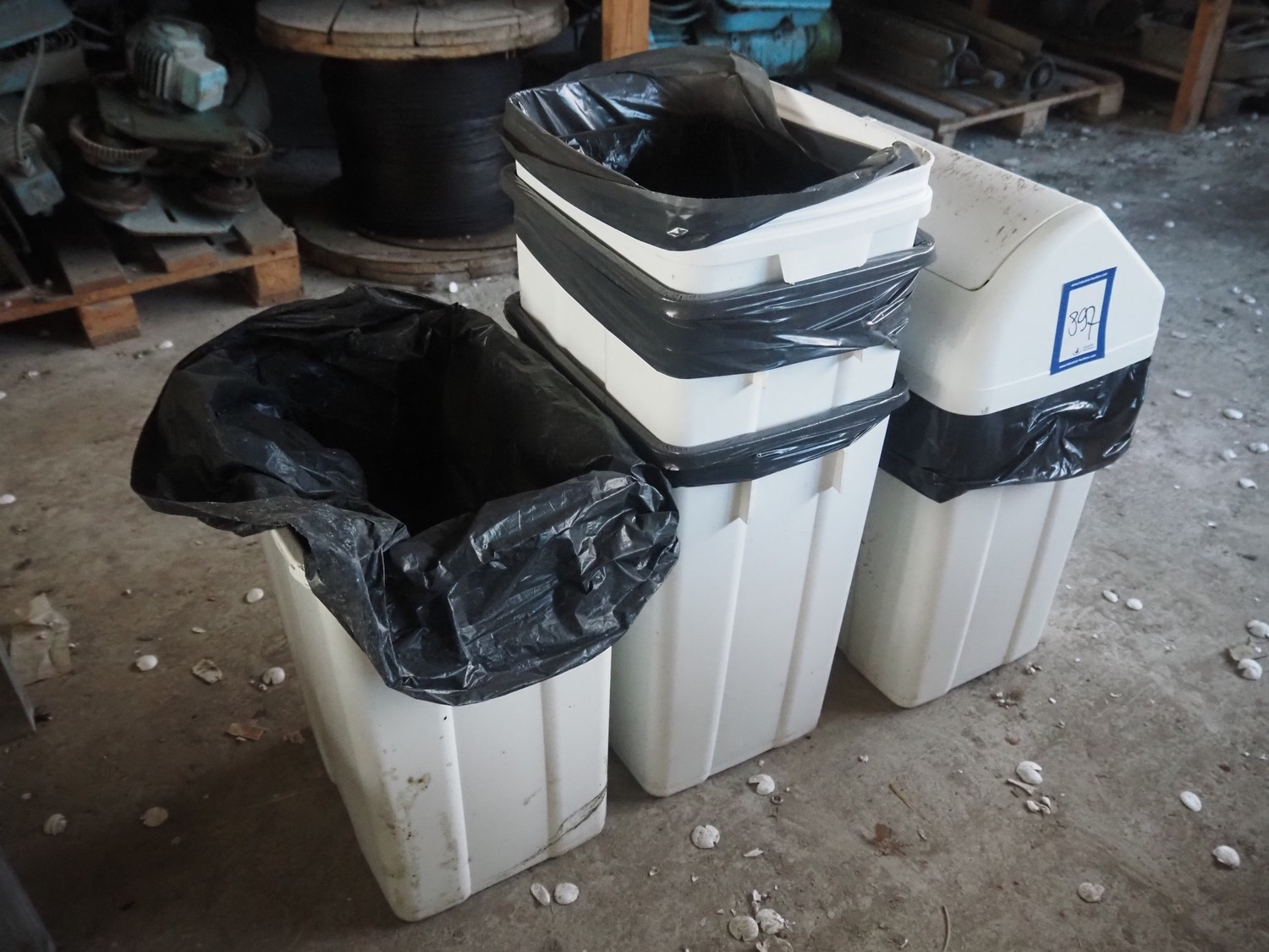 4 plastic waste bins, dimensions: 350 mm x 250 mm x 500 mm.