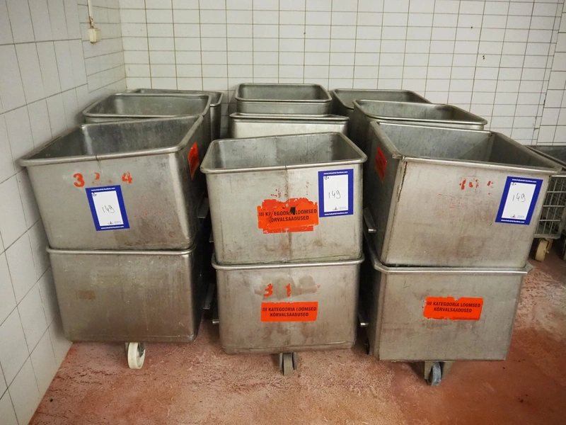 18 s/s meat bins, volume: (18x) 200 litre.