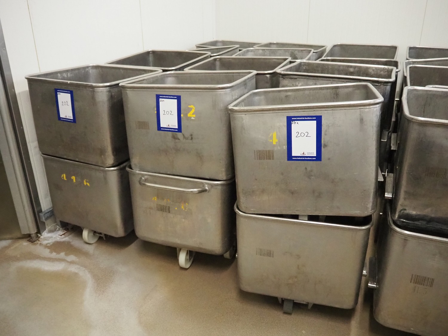 24 s/s meat bins, volume: (24x) 200 litre.