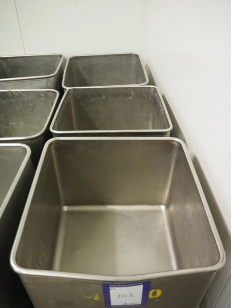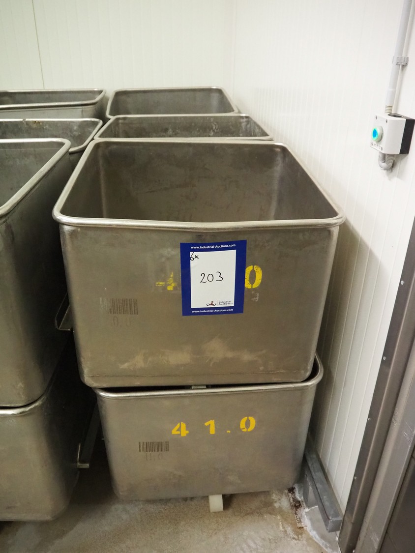 6 s/s meat bins, volume: (6x) 200 litre.