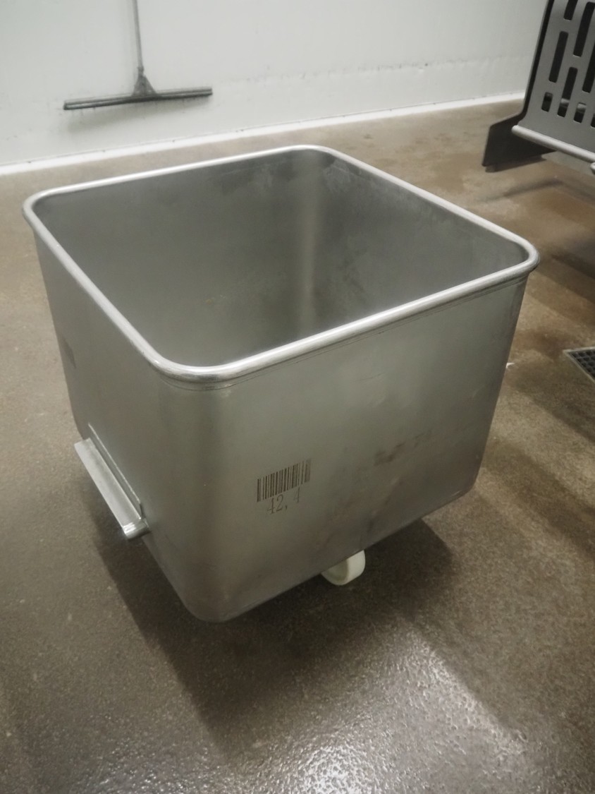 S/s meat bin, volume: 200 litre, dimensions: 650 mm x 720 mm x 670 mm.