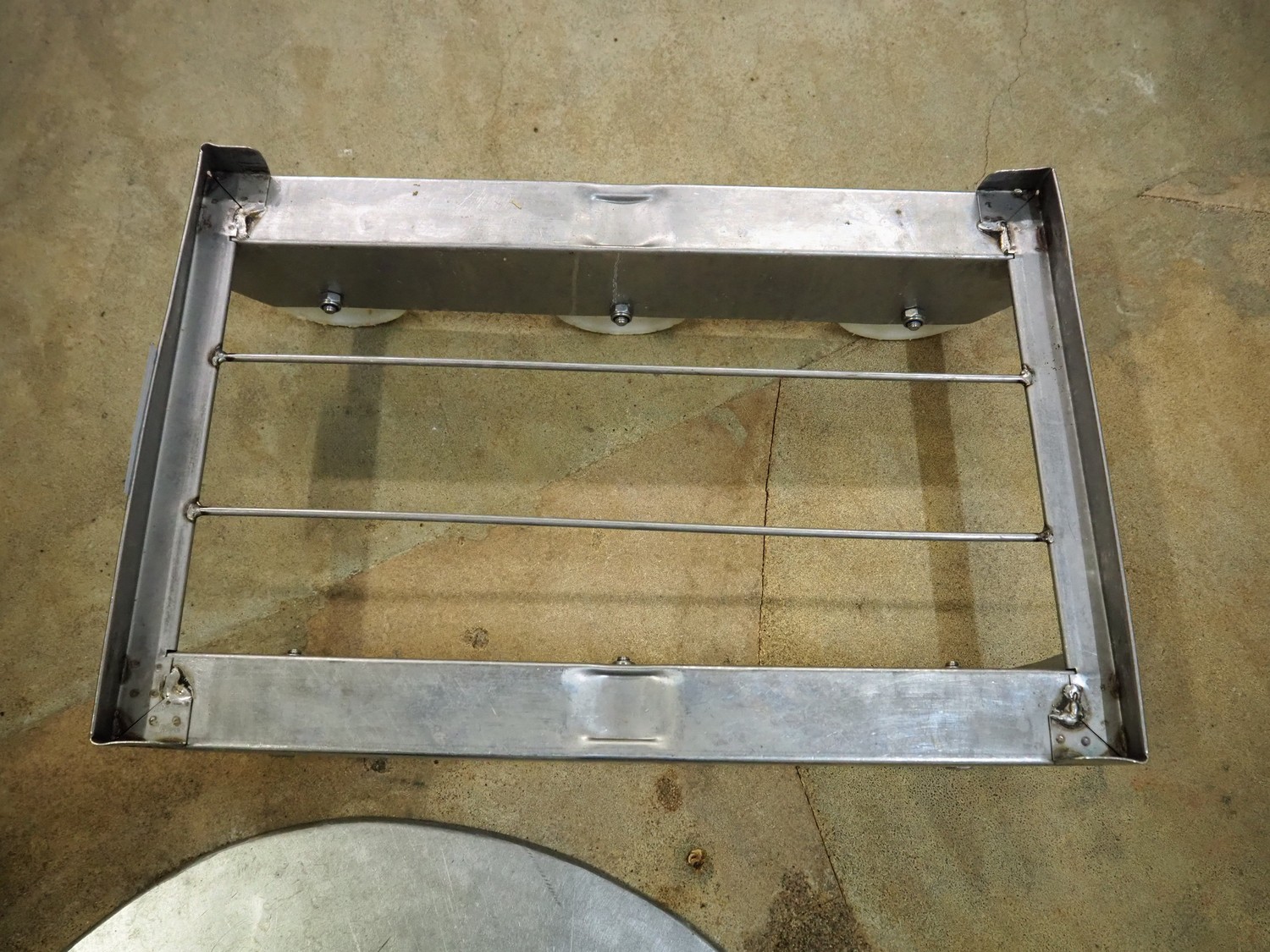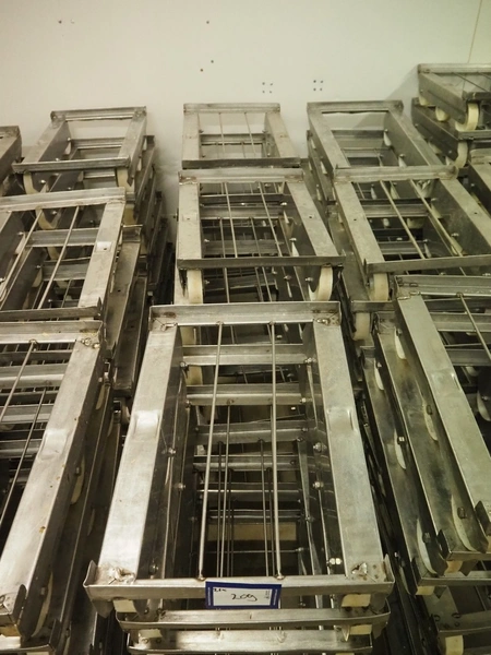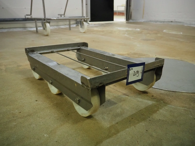 21 s/s rollies for E2 crates, dimensions: (21x) 610 mm x 410 mm x 180 mm.