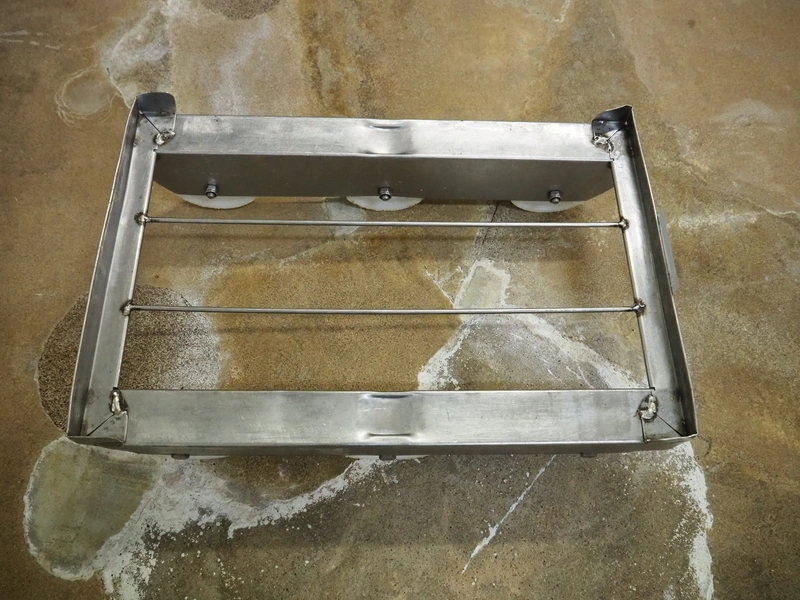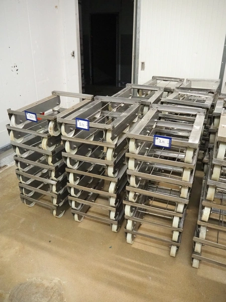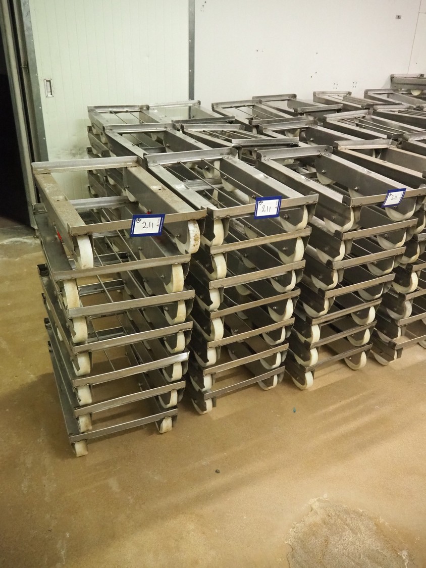 49 s/s rollies for E2 crates, dimensions: (49x) 610 mm x 410 mm x 180 mm.