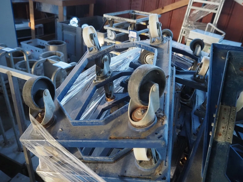 3 pallets with approximately 64 plastic rollies, dimensions rollies: (64x) 610 mm x 410 mm x 170 mm.